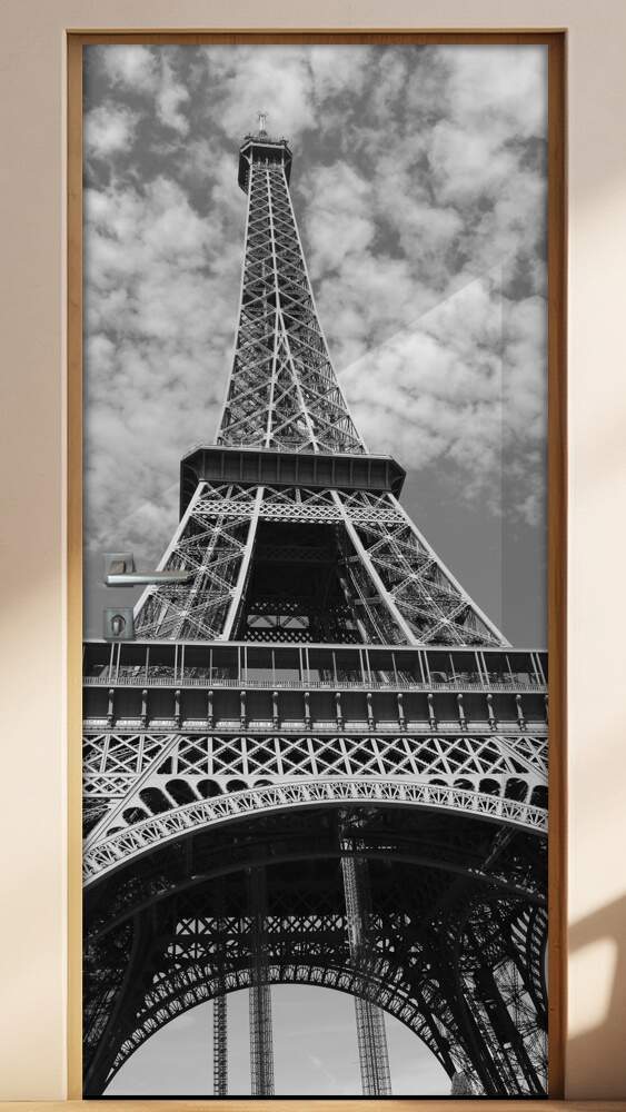 Transforme sua porta em uma porta para Paris com o Adesivo para Porta Torre Eiffel e Nuvens. Com uma imagem encantadora da Torre Eiffel vista de baixo para cima, em elegantes tons de preto e branco, este adesivo vai transformar completamente o visual do seu ambiente. Deixe-se transportar para a atmosfera mágica da Cidade Luz toda vez que entrar ou sair. Surpreenda-se com a sofisticação e charme que este adesivo trará para a sua casa, tornando-a ainda mais especial e acolhedora. Adquira o seu agora e adicione um toque de elegância parisiense ao seu espaço!