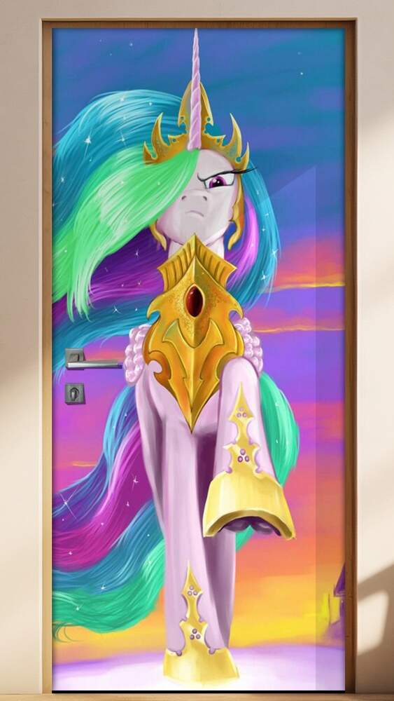 O exemplo mostrado é de uma porta com 90cm por 210cm, se sua porta tiver outra dimensão, não achatamos a imagem, porque isso a deixaria deformada, adaptaremos para encaixar em sua porta como neste exemplo