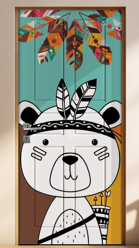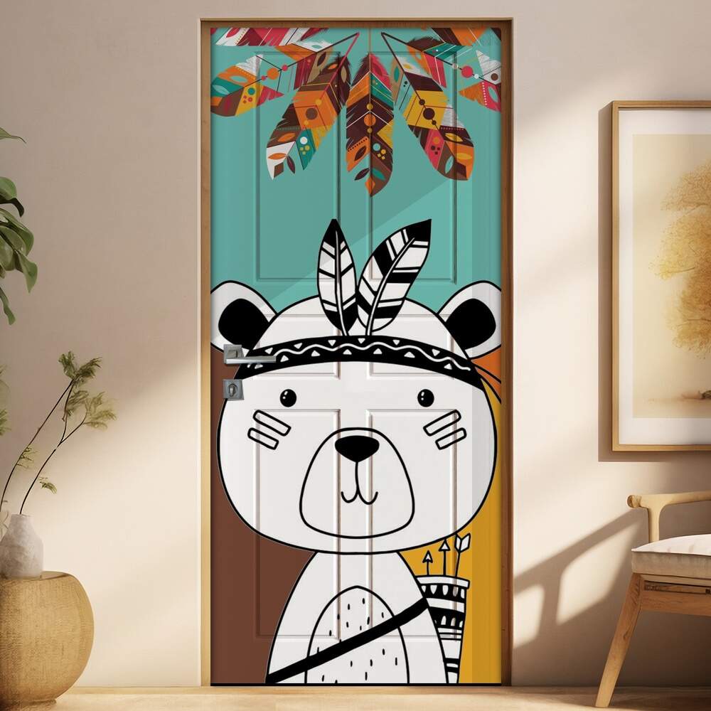 Transforme o quartinho do seu pequeno em um ambiente encantador e acolhedor com o Adesivo para Porta Ursinho Indígena. Com um design fofo e repleto de significado, este adesivo decorativo para portas irá trazer a doçura e a simplicidade do tema Ursinho Indígena para a decoração. Adornado com penas coloridas e pinturas faciais, ele celebra a riqueza cultural e a conexão com a natureza. Ideal para criar um espaço único e cheio de personalidade para o seu pequeno. Garanta já o seu adesivo e transforme a decoração com praticidade e estilo!