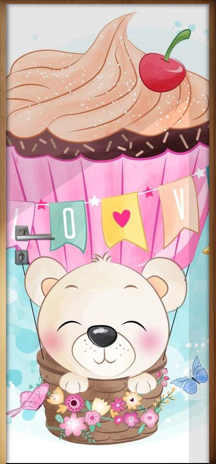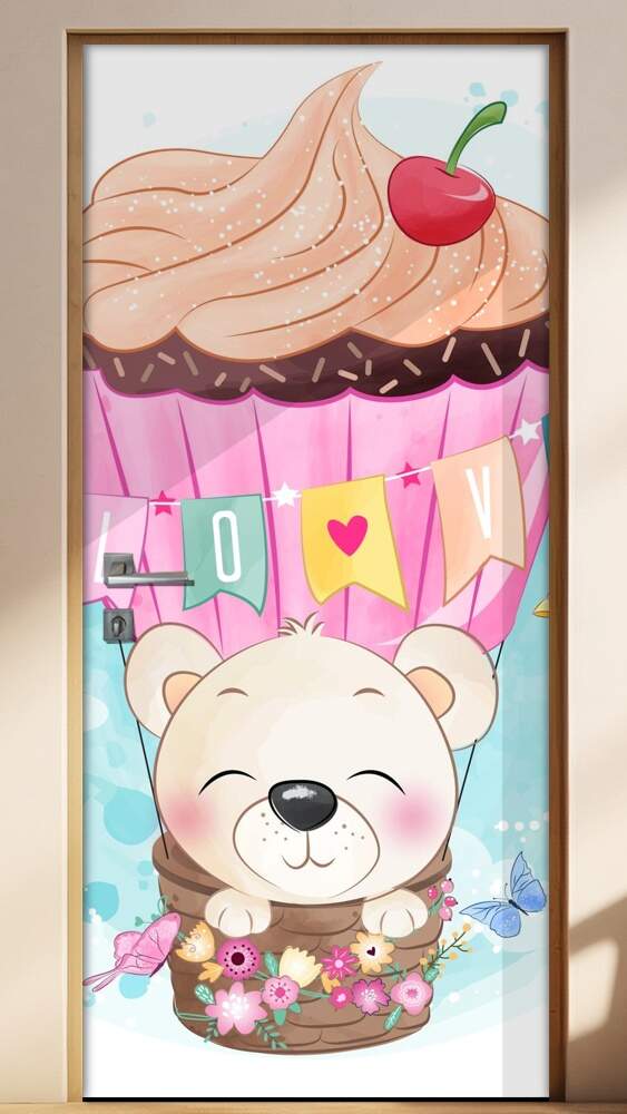 Adesivo para Porta Ursinho no Balão de Cupcake