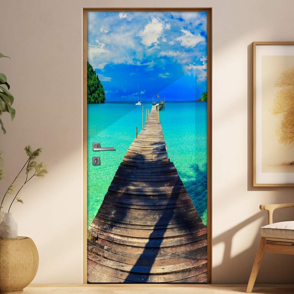 Transforme sua porta em um portal para um mundo de tranquilidade e belezas naturais com o Adesivo para Porta Ponte Indo no Mar. Renove a decoração do seu ambiente com esta estampa incrível de um magnífico mar e céu azul, com uma ponte indo em sua direção. Deixe-se envolver por essa paisagem encantadora e traga mais harmonia para o seu espaço. Surpreenda-se com a qualidade e facilidade de aplicação deste adesivo, perfeito para quem busca sofisticação e originalidade na decoração. Adquira já o seu e transforme sua casa em um refúgio de paz e tranquilidade.