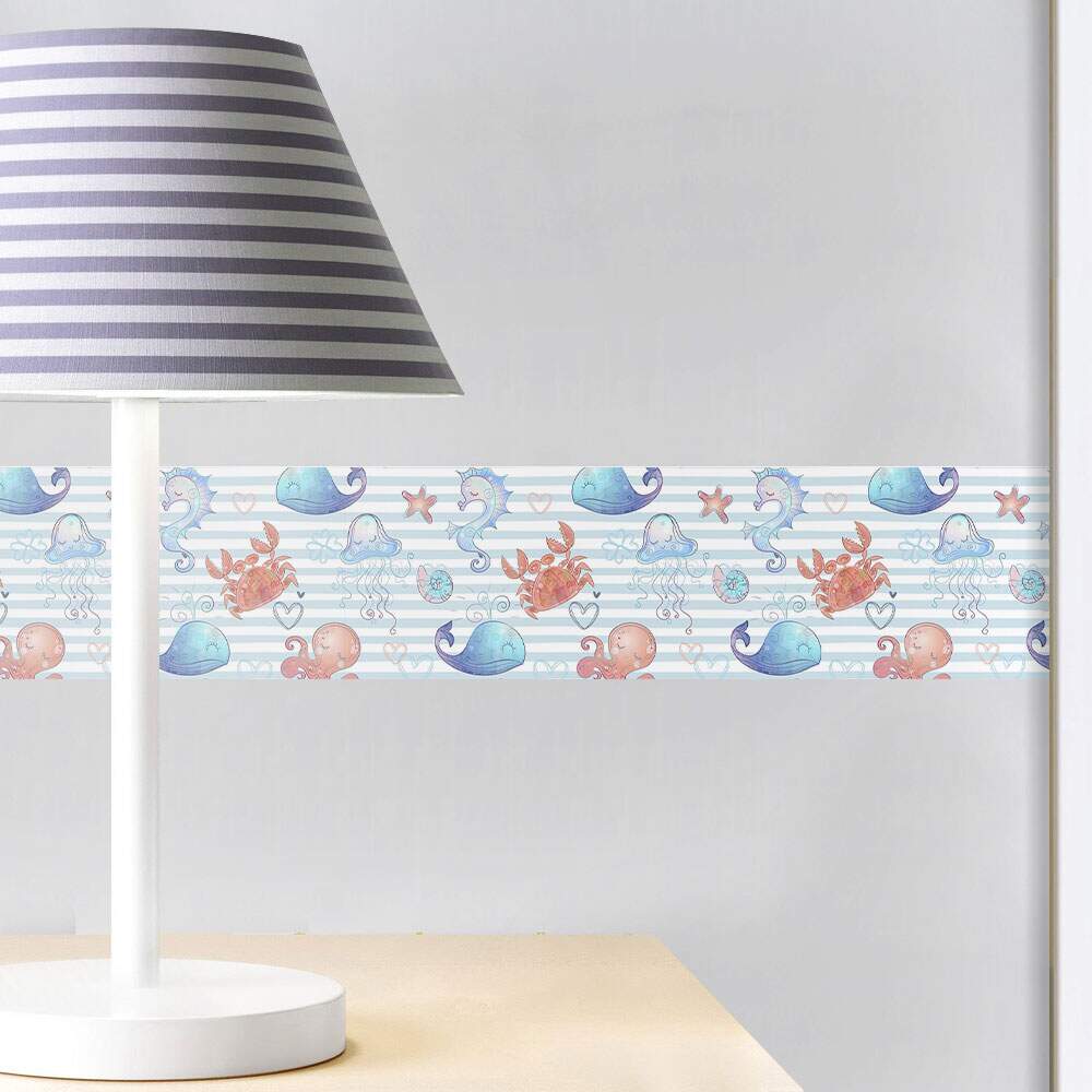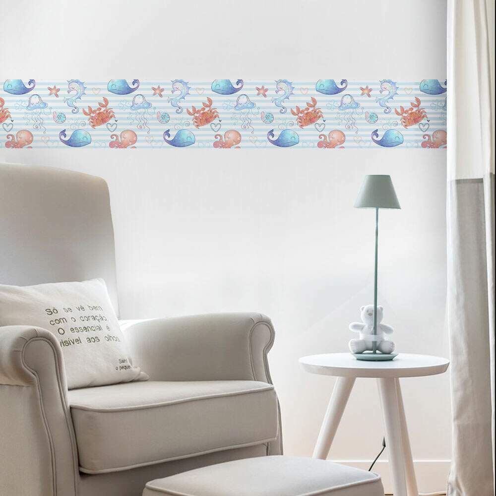 Deixe o quarto do seu bebê ainda mais encantador com a Faixa Decorativa Menino Fundo do Mar Baby. Ideal para criar um ambiente gracioso e aconchegante, essa faixa de parede de alta qualidade é fabricada com materiais premium para garantir um acabamento impecável. Transforme o cantinho do seu pequeno em um verdadeiro oceano de ternura e delicadeza com esse lindo artigo decorativo. Aproveite toda a magia e encanto do fundo do mar para deixar o ambiente ainda mais especial.