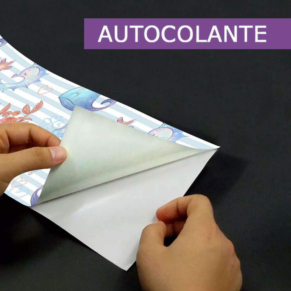 Sim. Ela é auto colante, não necessita de cola e a aplicação é super simples e rápida. Ela tem uma ótima fixação e pode ser aplicada em parede, vidros, madeira ou qualquer superfície lisa.
