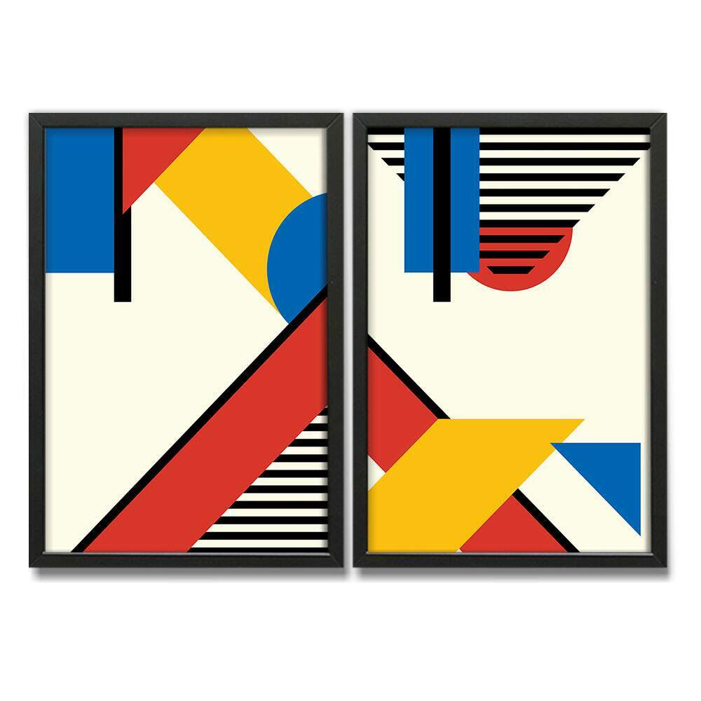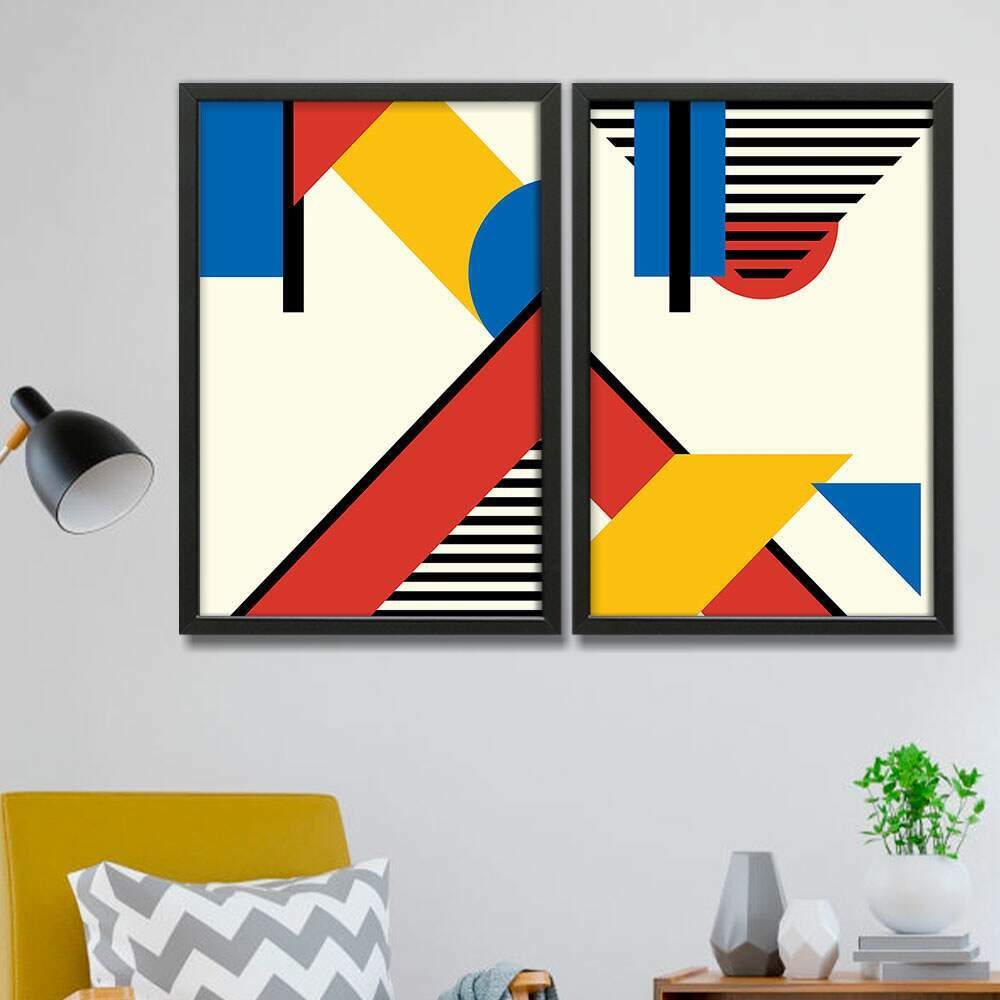 Kit 2 Quadros Decorativos Abstrato Geométricos Coloridos