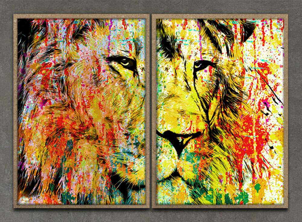 O nosso Kit 2 Quadros Decorativos Abstratos Leão Pintura Colorida vai deixar o seu ambiente de cara nova, de uma maneira mais contemporânea e atraente deixando seu espaço com mais vida. Kit 2 quadros decorativos, quadros decorativos abstratos, decorações com leão, decorações pinturas coloridas.