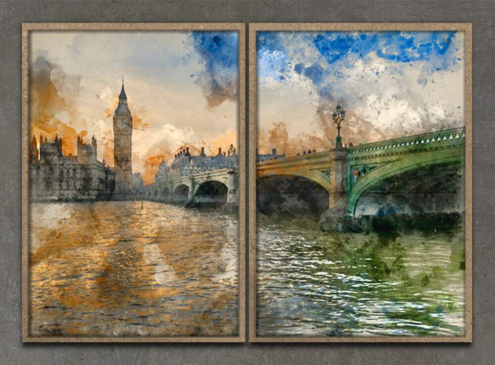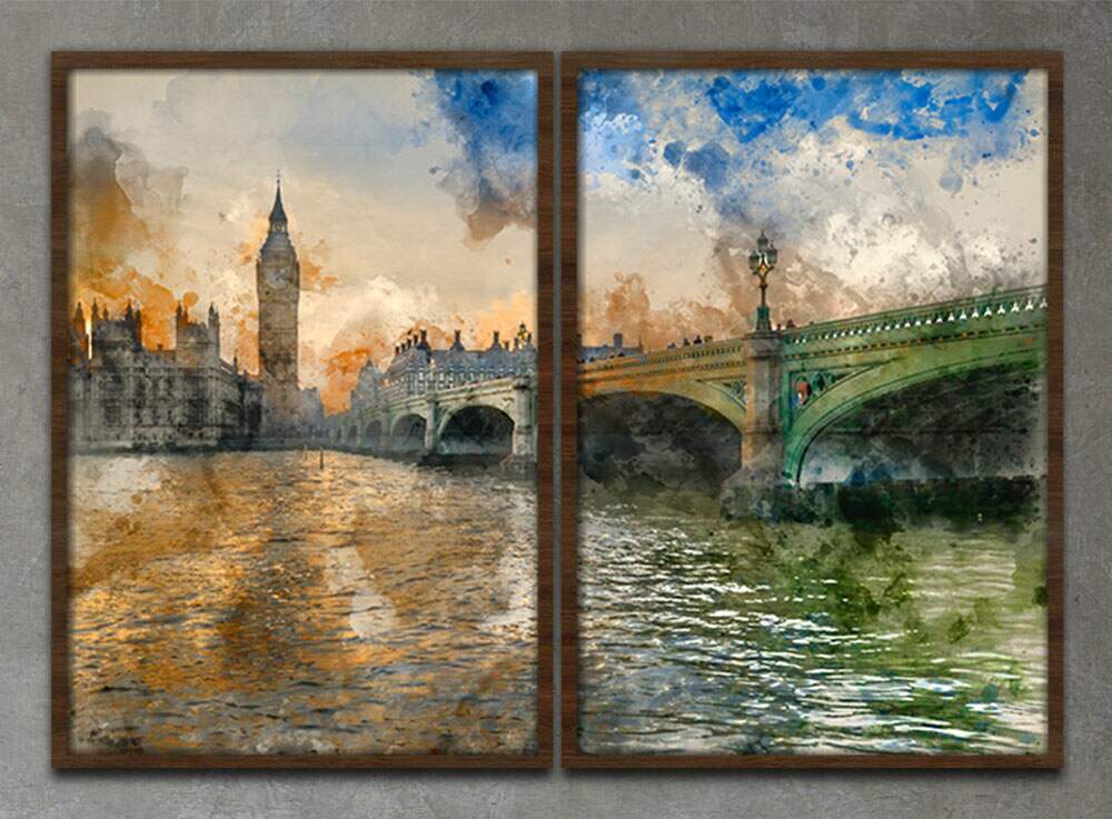 Kit 2 Quadros Decorativos Abstratos Pintura Londres