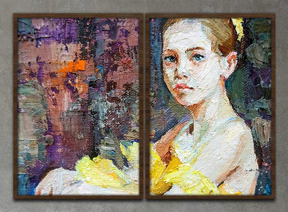 Kit 2 Quadros Decorativos Abstratos Pintura Menina de Amarelo