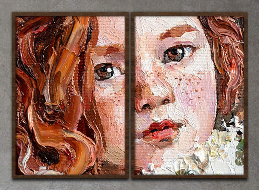 Kit 2 Quadros Decorativos Abstratos Pintura Menina Ruiva