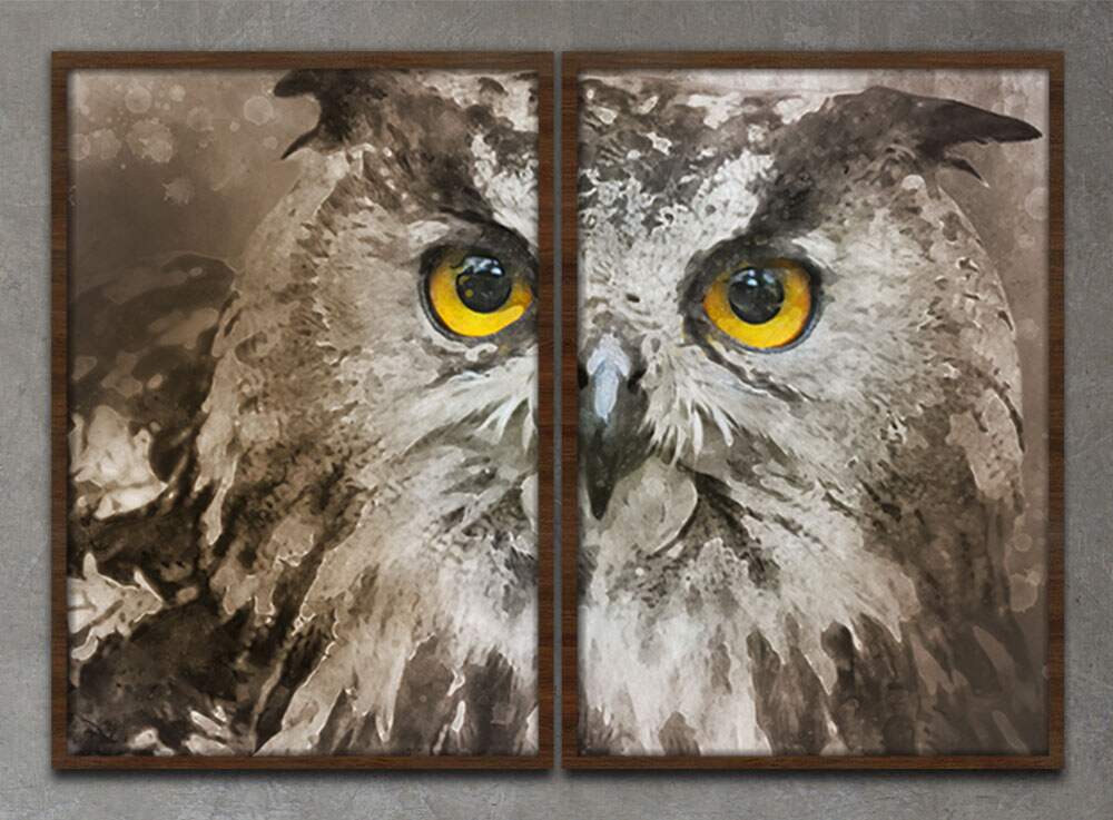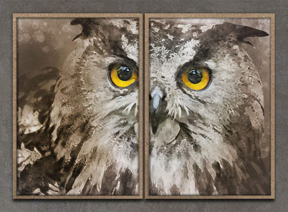 As corujas usam sobretudo seus olhos extremamente aguçados e movimentos rápidos para serem caçadoras eficientes, se você gosta de decorações rusticas e diferenciada vai amar o Kit 2 Quadros Decorativos Pintura Coruja. Kit 2 quadros decorativos, quadros decorativos rusticos, pinturas, corujas.