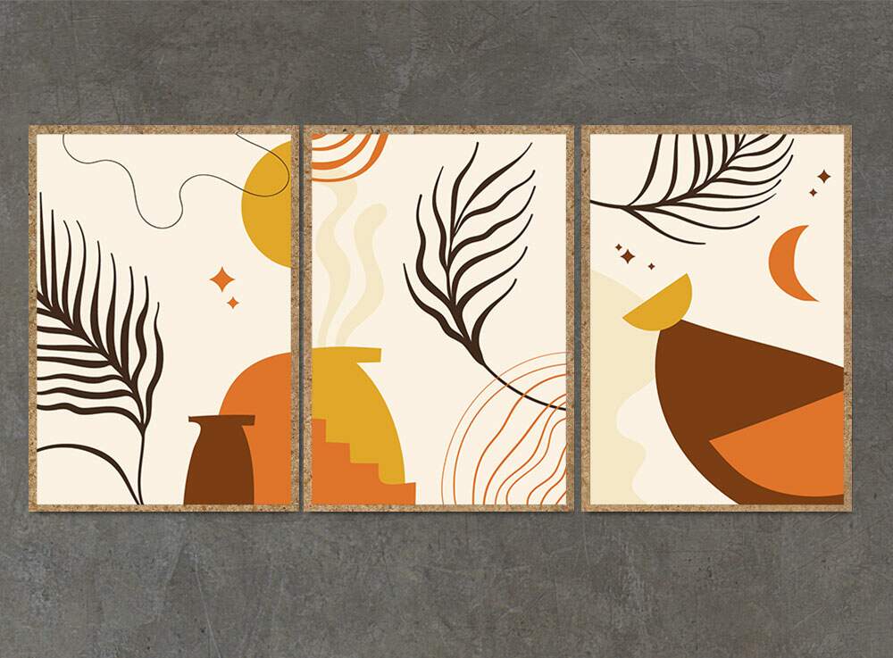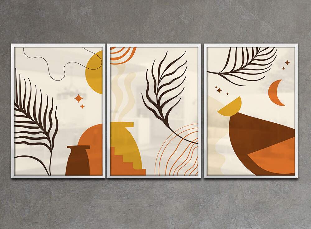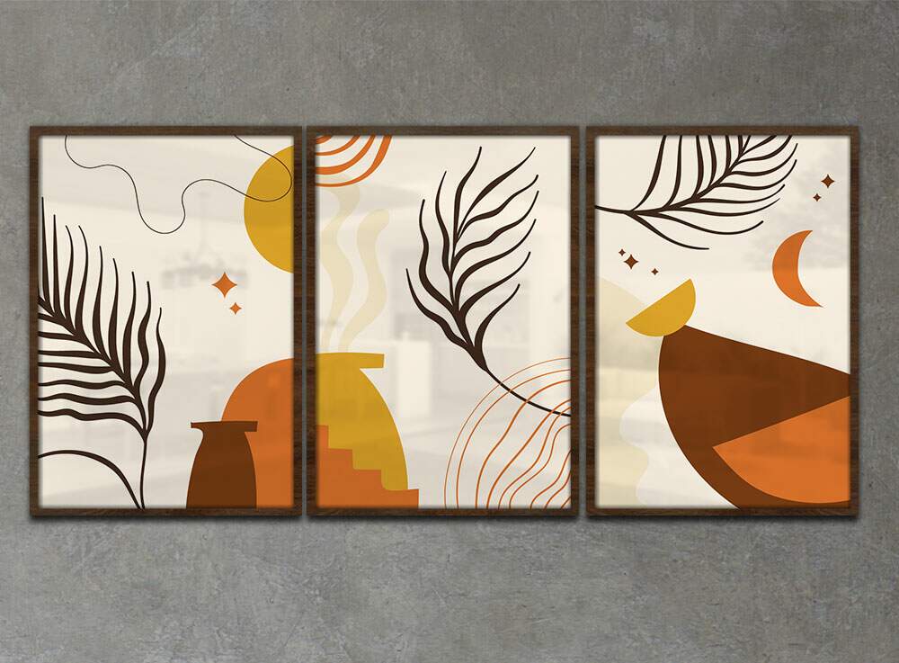 Kit 3 Quadros Decorativos Abstrato Folhagens Soltas