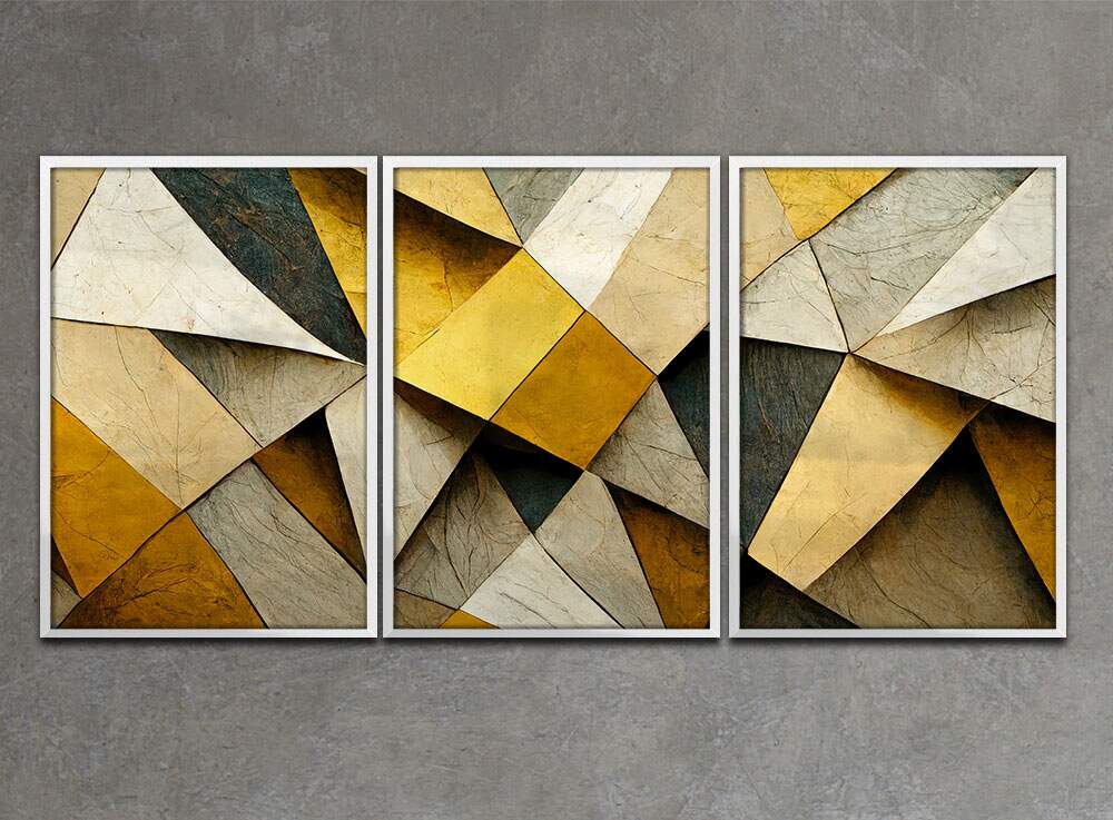 Kit 3 Quadros Decorativos Abstrato Tons de Amarelo