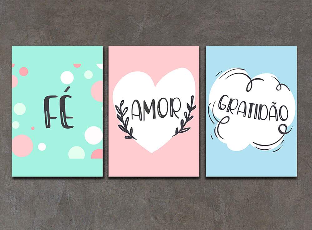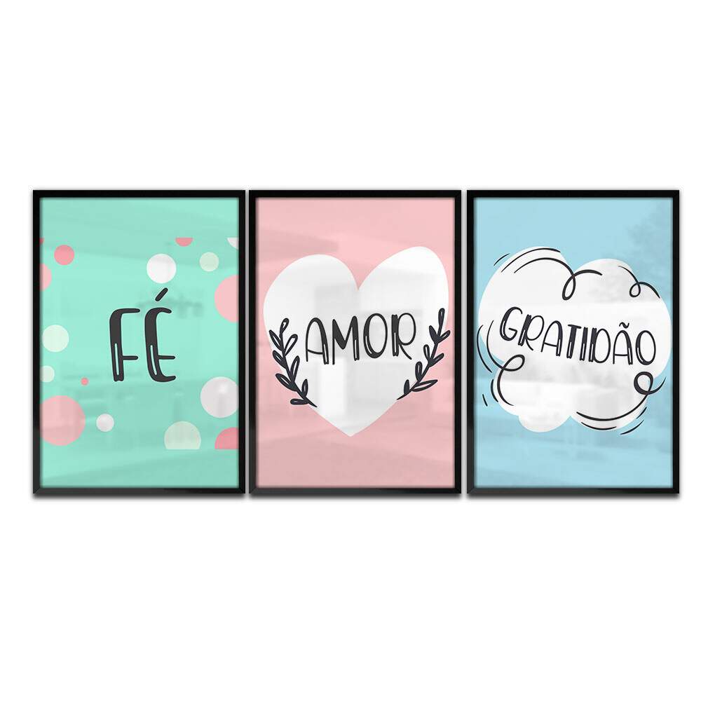 Kit 3 Quadros Decorativos Fé Amor e Gratidão 05