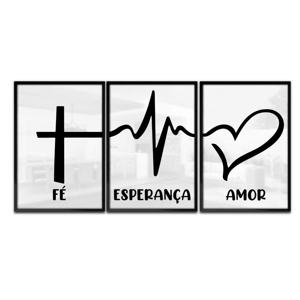 Kit 3 Quadros Decorativos Fé Esperança e Amor 01