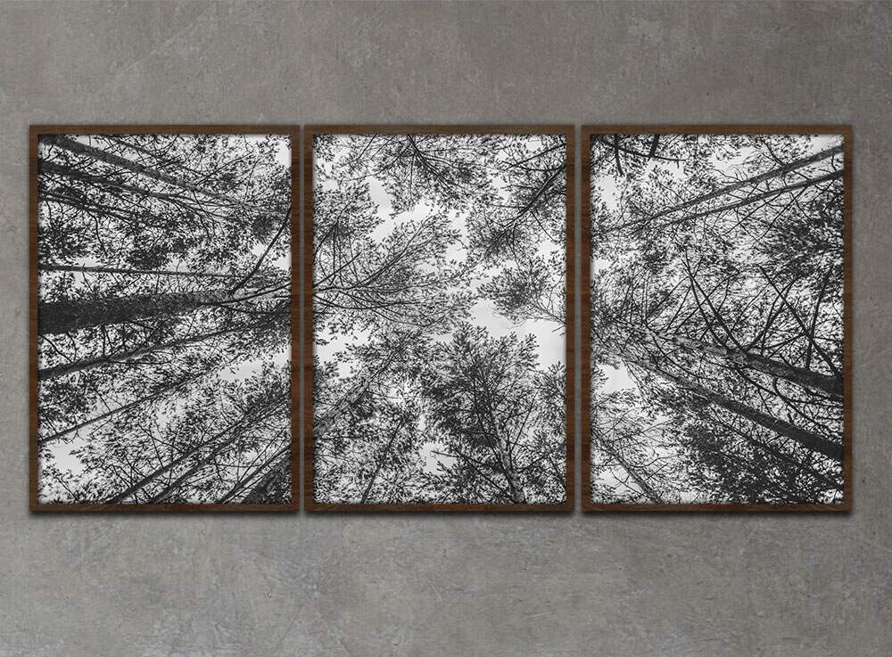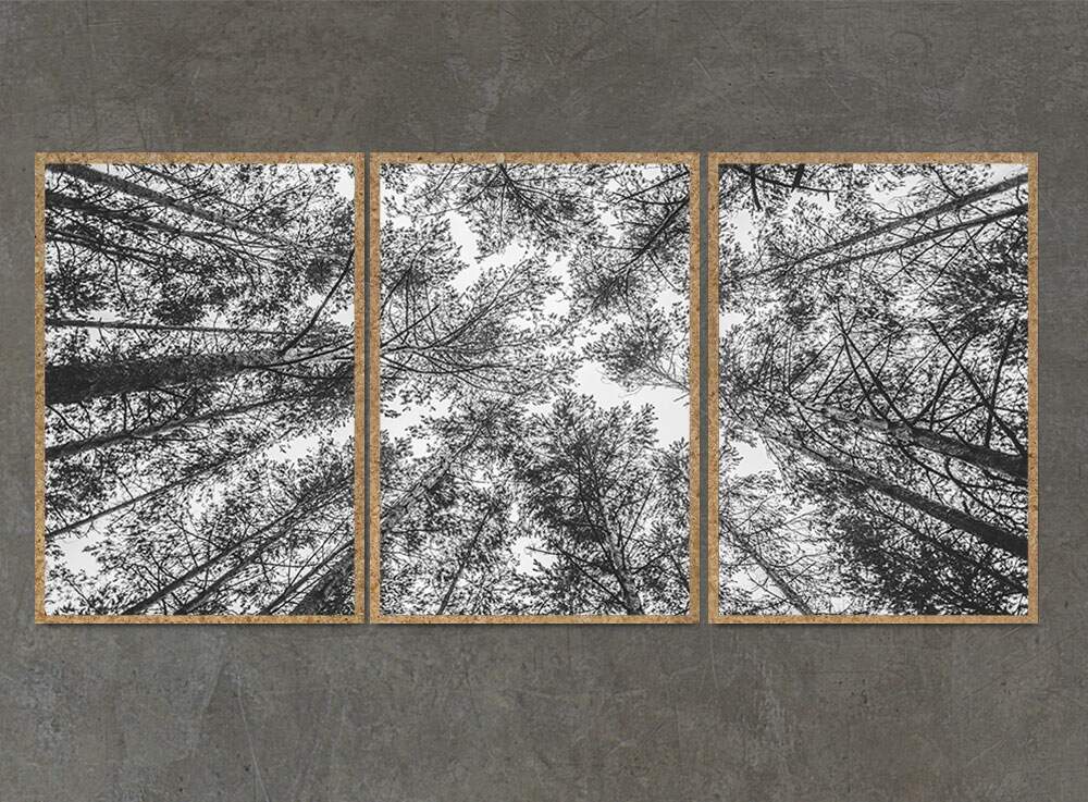 Kit 3 Quadros Decorativos Floresta Preto e Branco