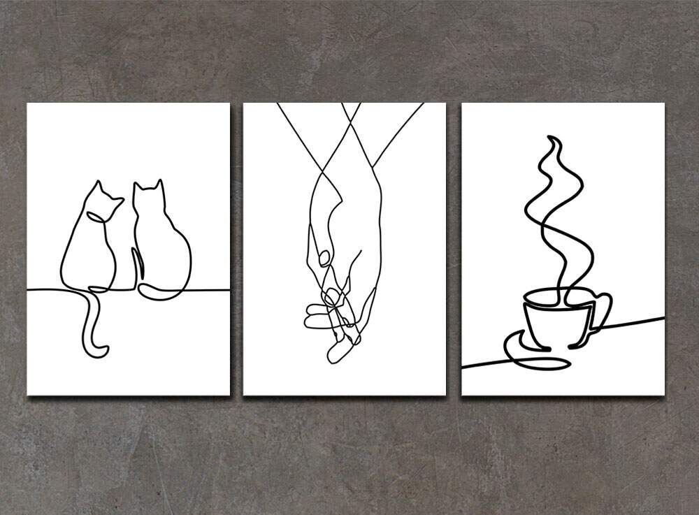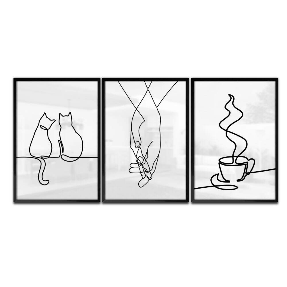 Decore seu ambiente com o charme e elegância do Kit 3 Quadros Decorativos Mãos Gatos e Café. Com silhuetas e traços minimalistas, essas peças trazem uma atmosfera moderna e sofisticada para sua casa. Os gatos e o café, representados de forma sutil, adicionam um toque de fofura e aconchego ao ambiente. Perfeito para quem busca uma decoração clean e cheia de personalidade. Aproveite para transformar seu espaço com esses quadros únicos e cheios de estilo.