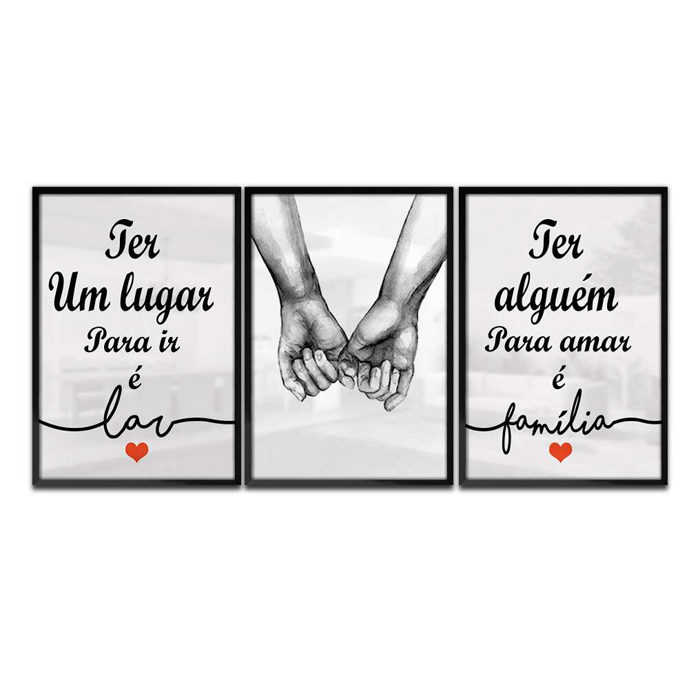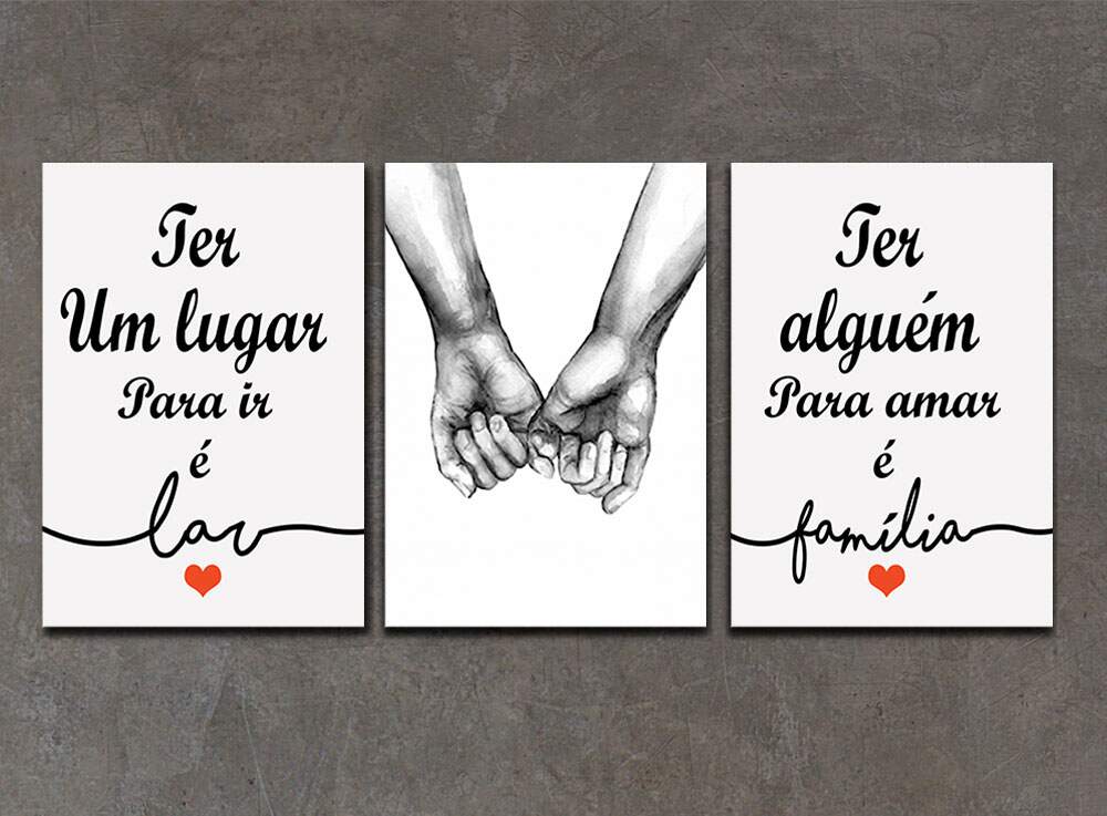 Kit 3 Quadros Decorativos Ter Alguém para Amar é Família