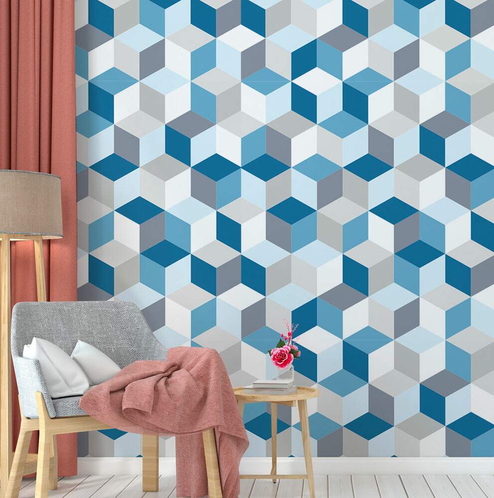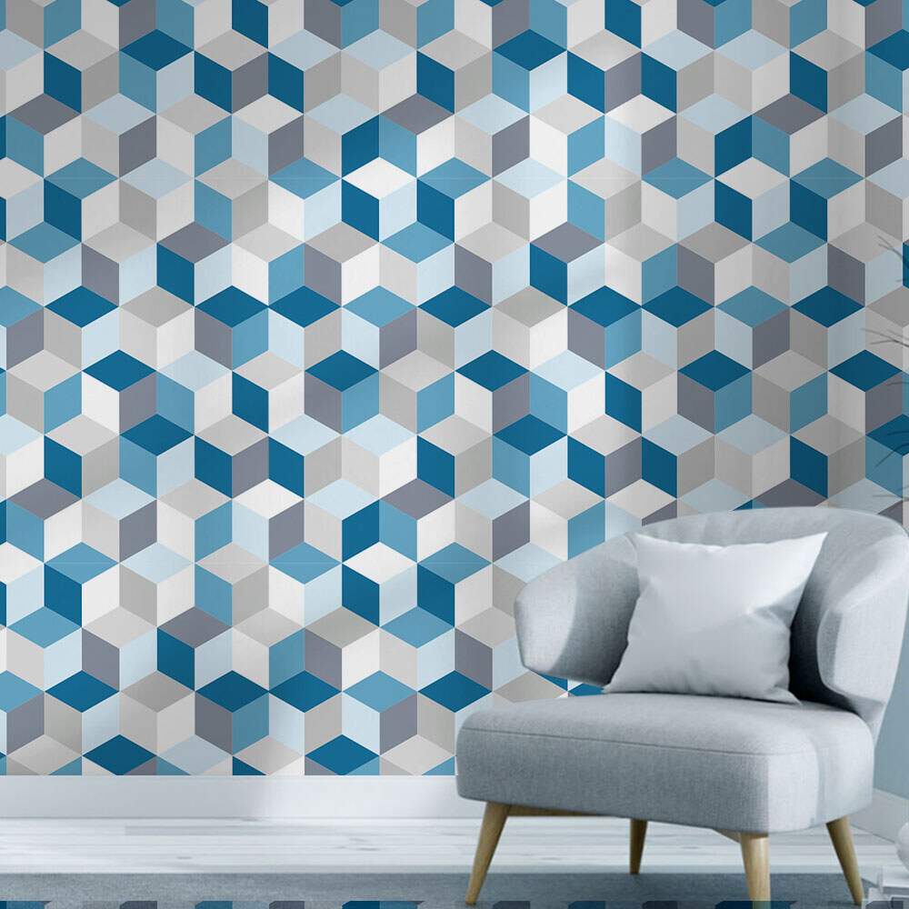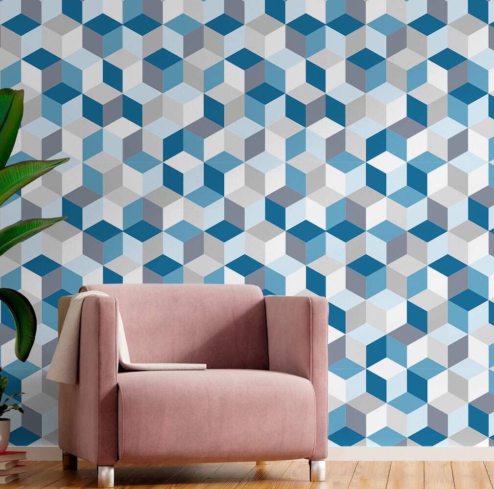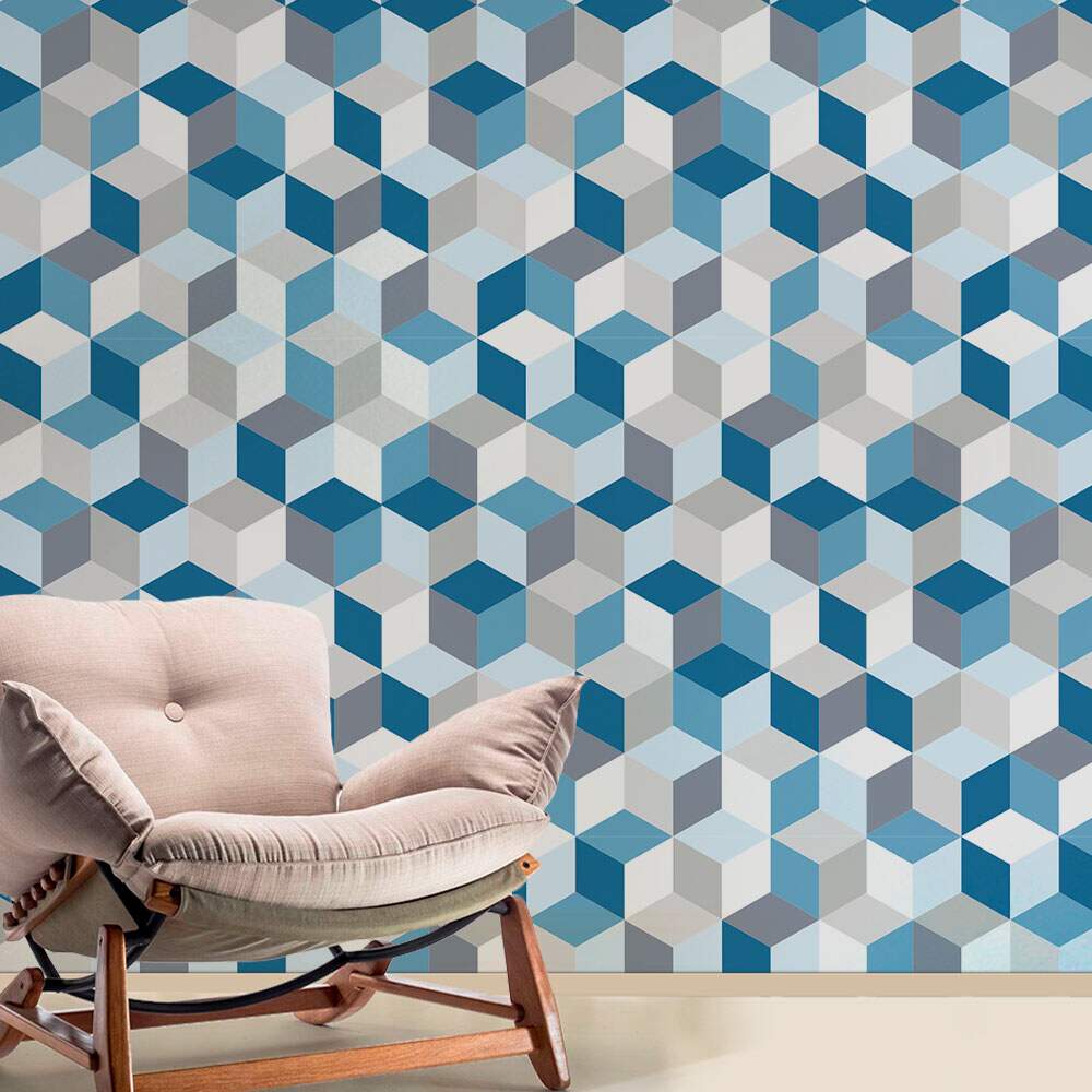 Papel de Parede 3D - 019 Cubos Azuis