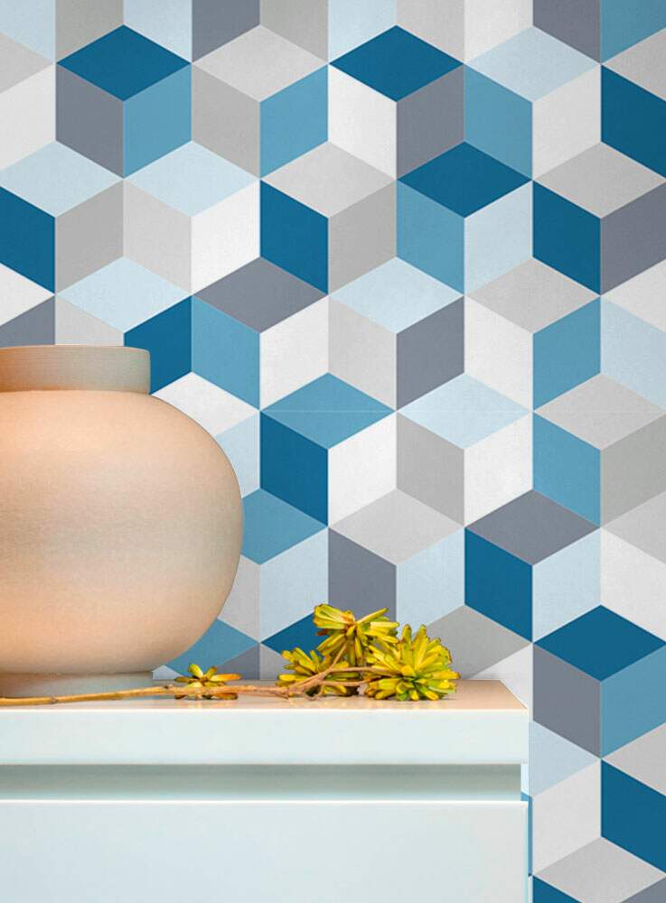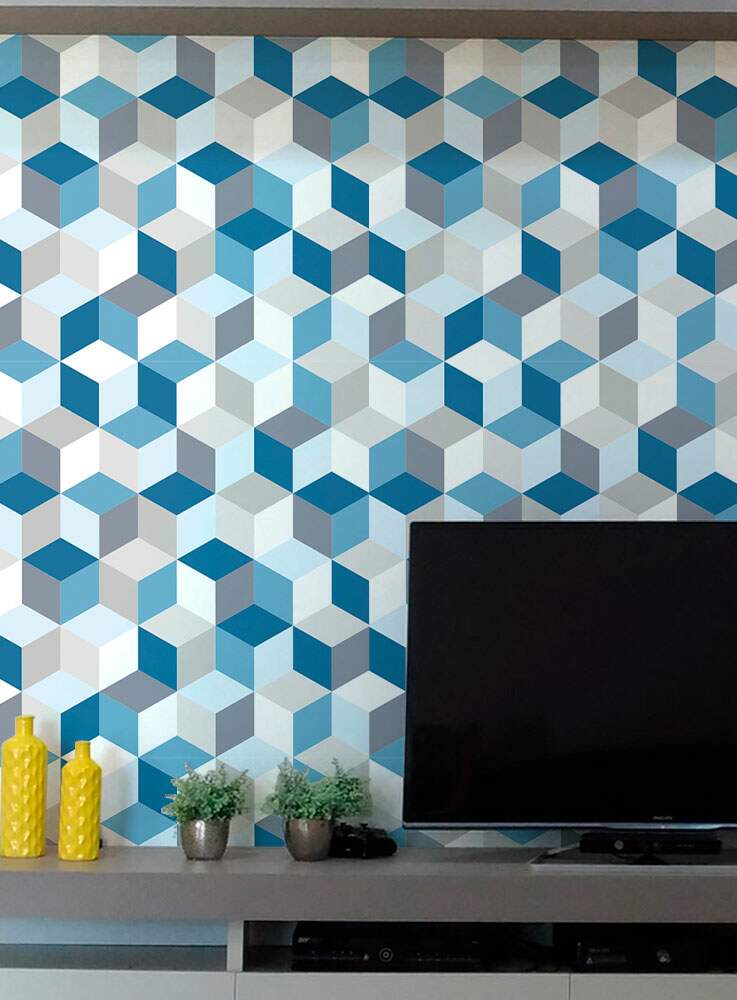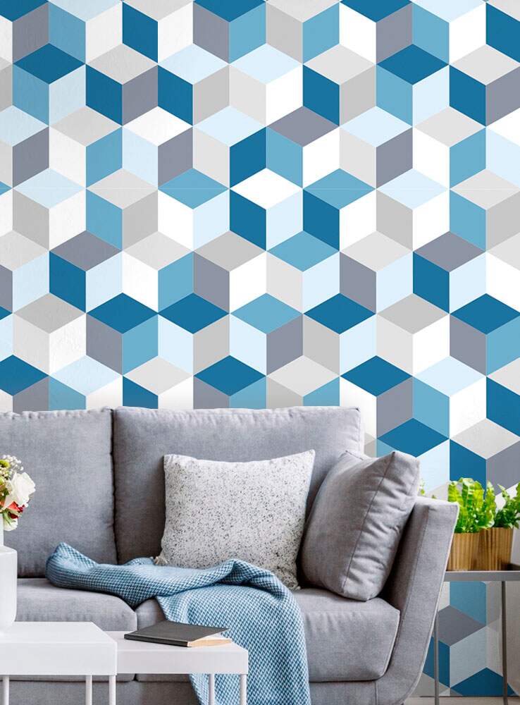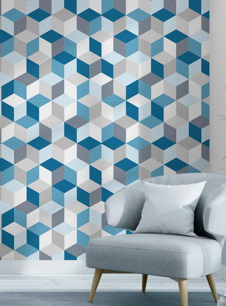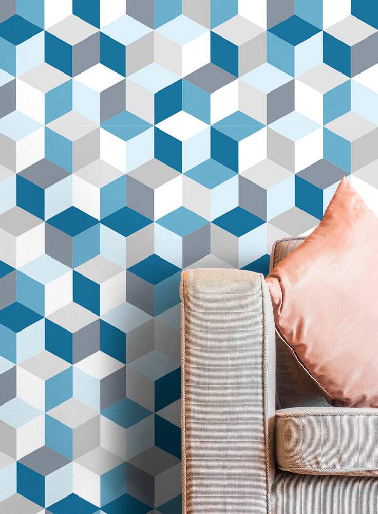 Papel de Parede 3D - 019 Cubos Azuis