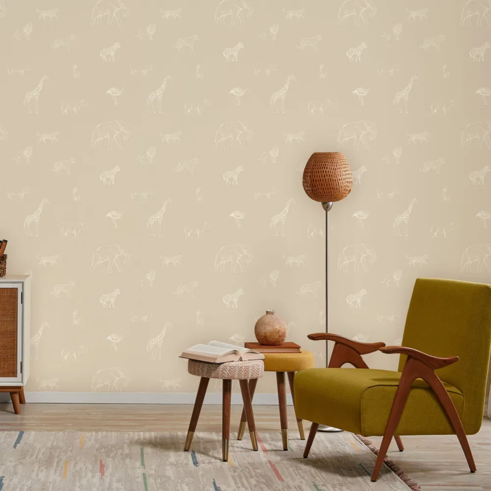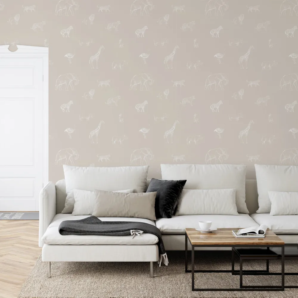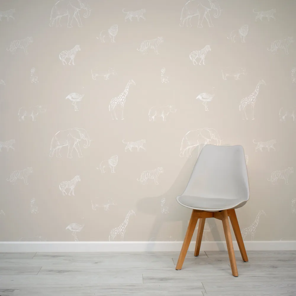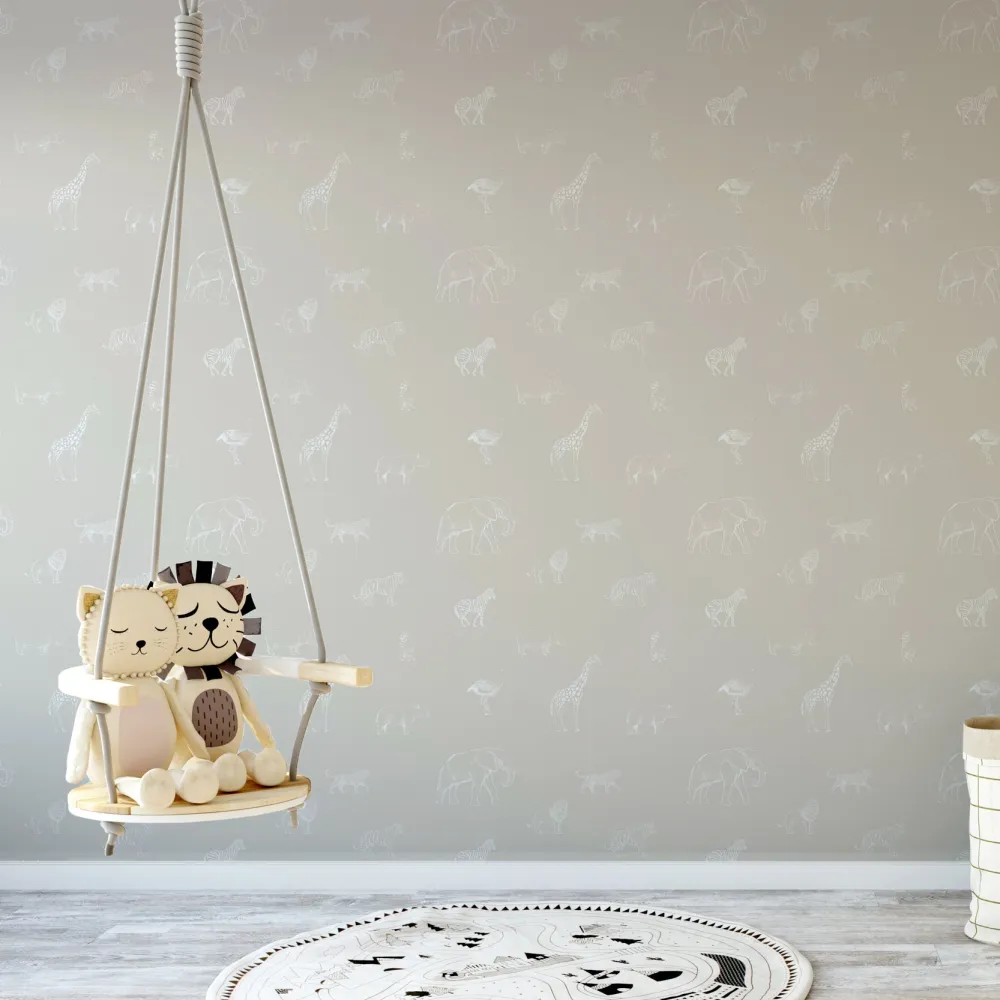Transforme o quarto das crianças com este encantador papel de parede que apresenta animais da safari desenhados em um estilo delicado. A combinação de tons creme e brancos traz um toque suave e elegante, perfeito para criar um ambiente lúdico e aconchegante.