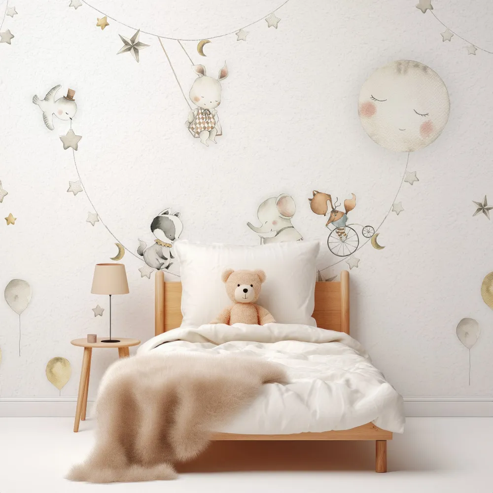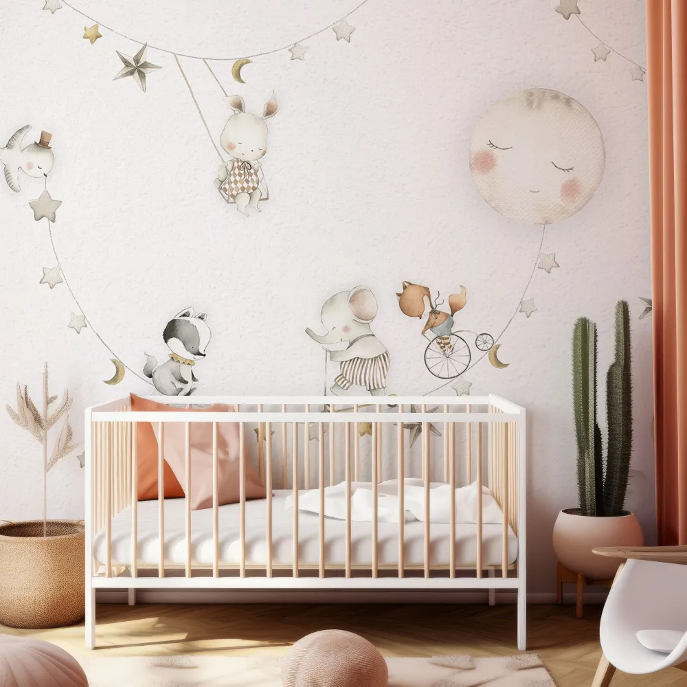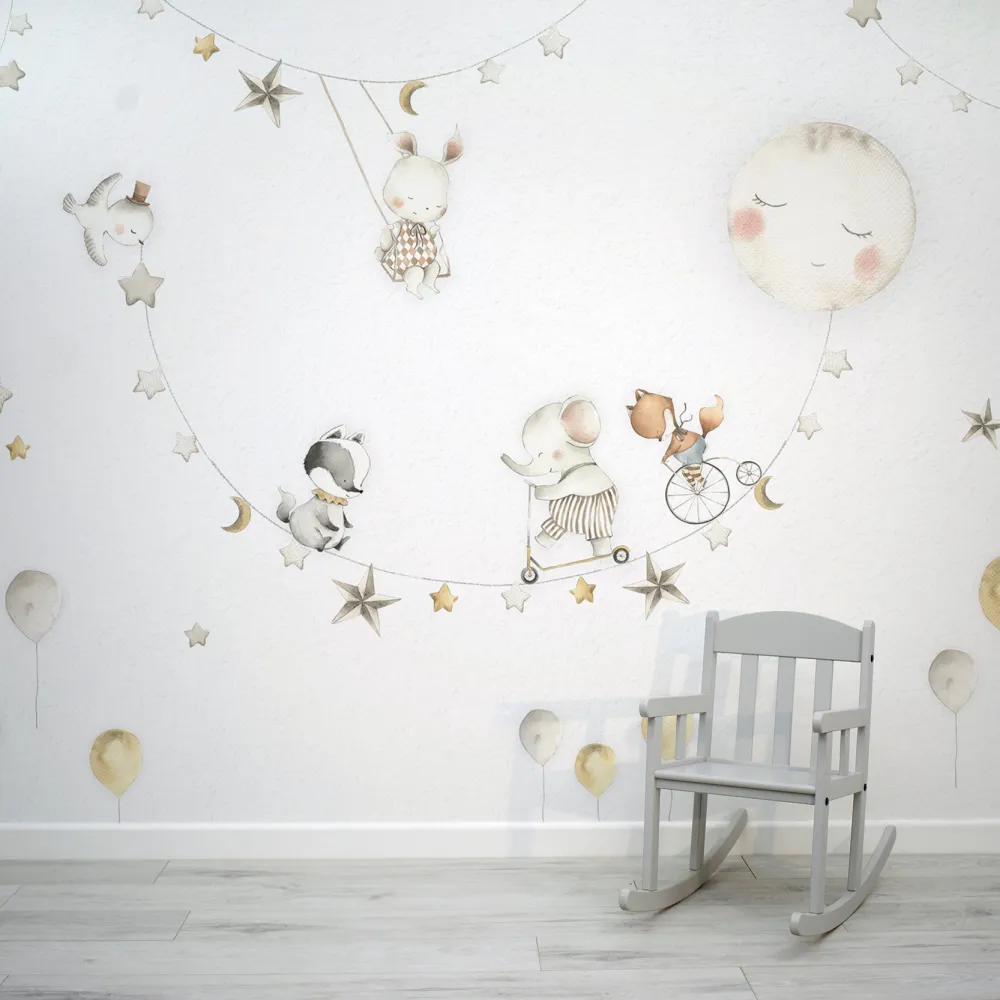 Papel de Parede Animais de Berço com Estrelas e Lua MP