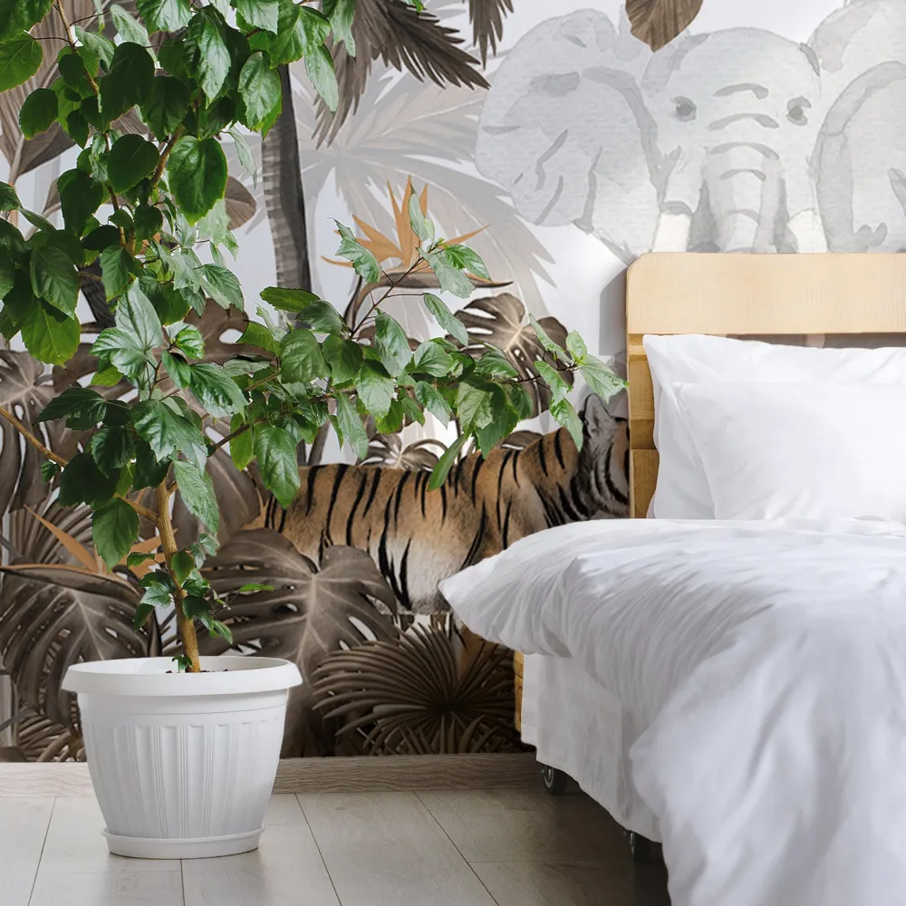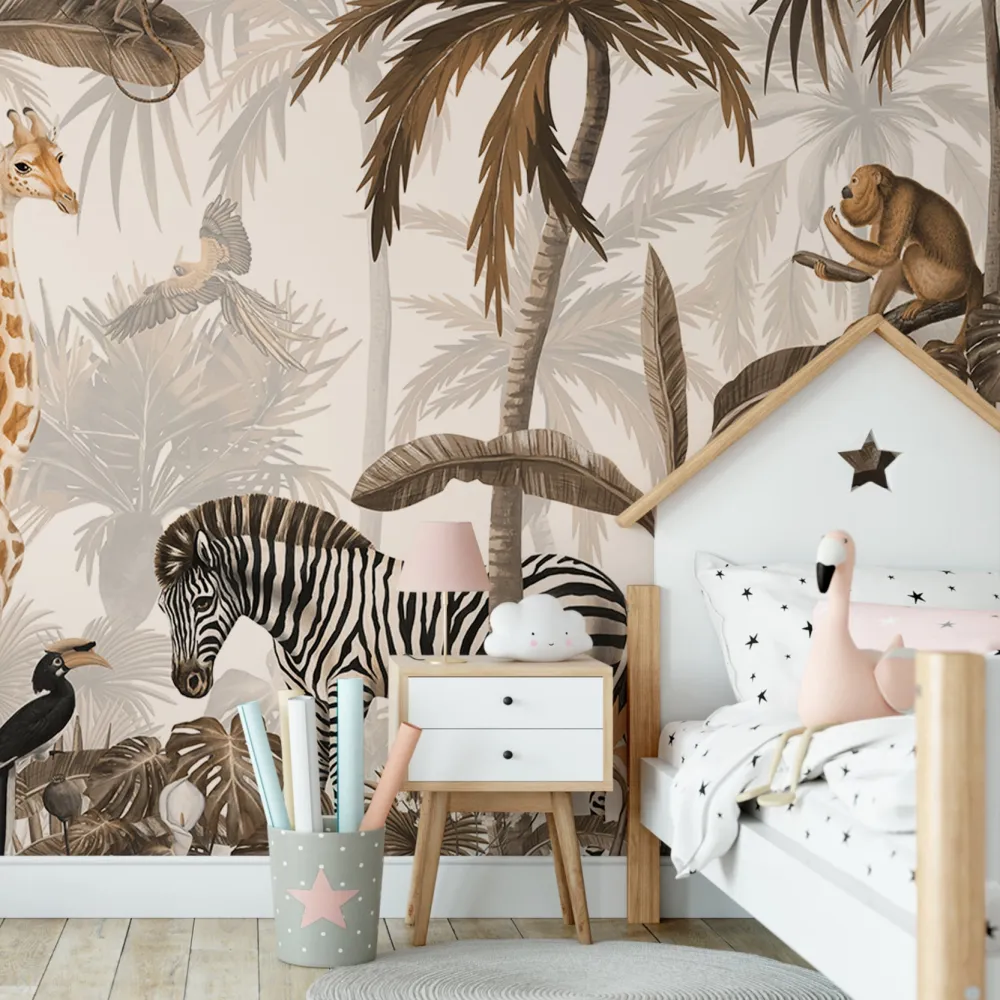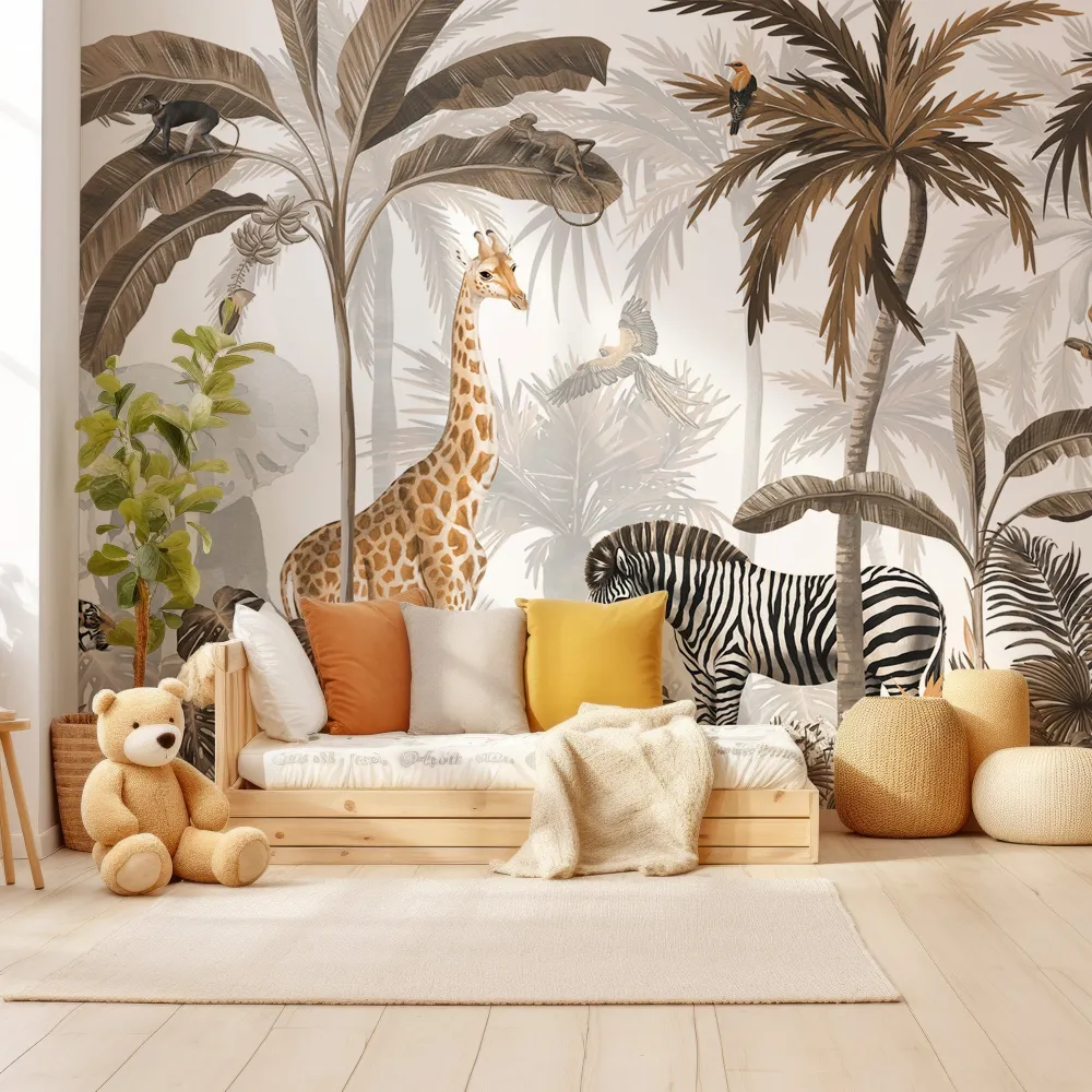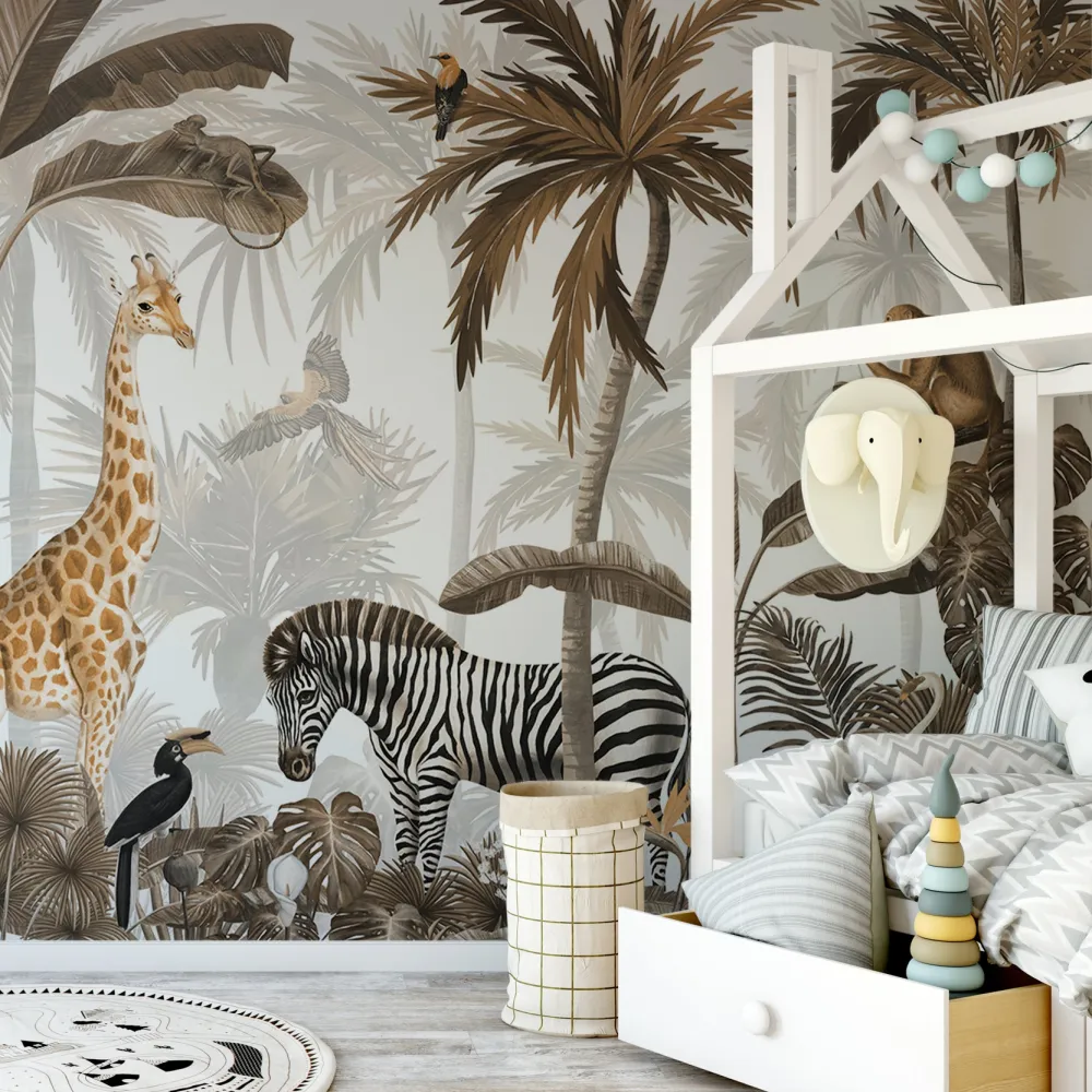 Explore a beleza do reino animal com o Papel de Parede Aquarela Animais da Selva. Este design encantador apresenta uma ilustração em tons de sépia que traz à vida uma floresta tropical repleta de animais majestosos, como girafas, zebras e tigres. Com sua estética vintage e toque artístico, é perfeito para criar um ambiente neutro e atemporal em quartos infantis, promovendo a harmonia entre natureza e design.