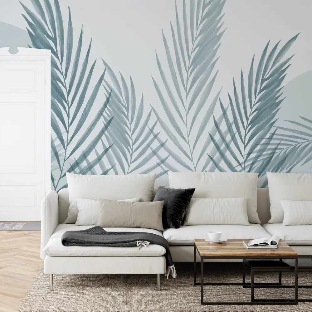 Papel de Parede Aquarela Azul Folhas Minimalistas MP