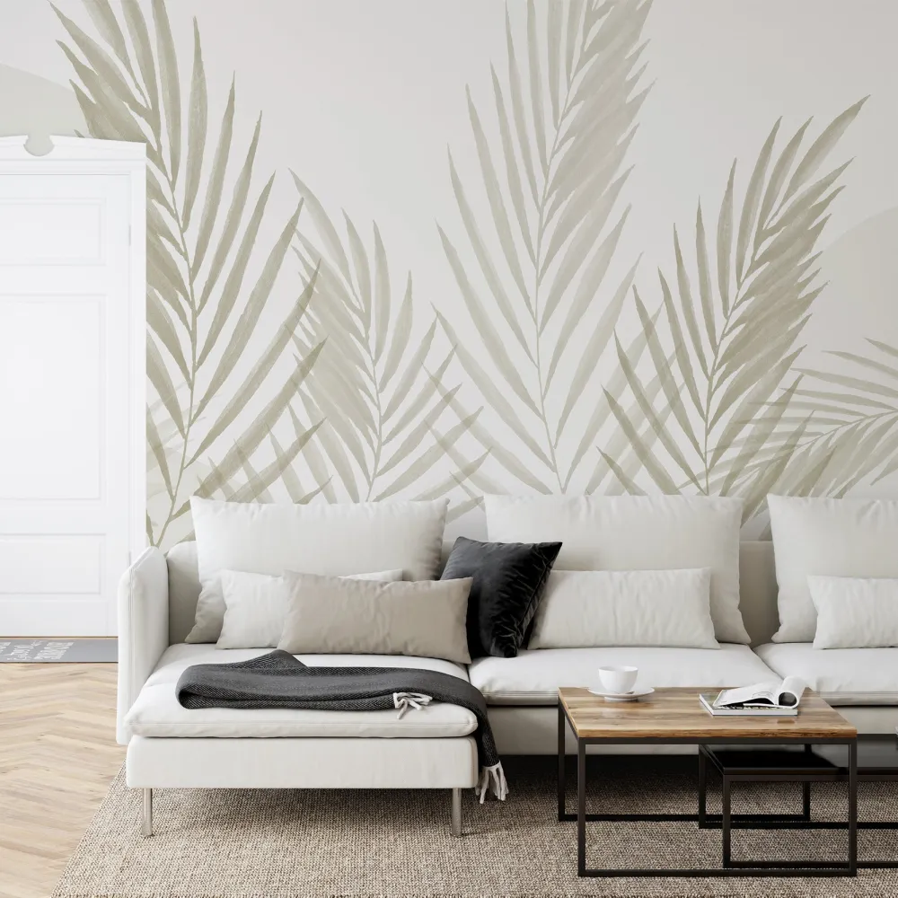Papel de Parede Aquarela Folhas Minimalistas Greige MP
