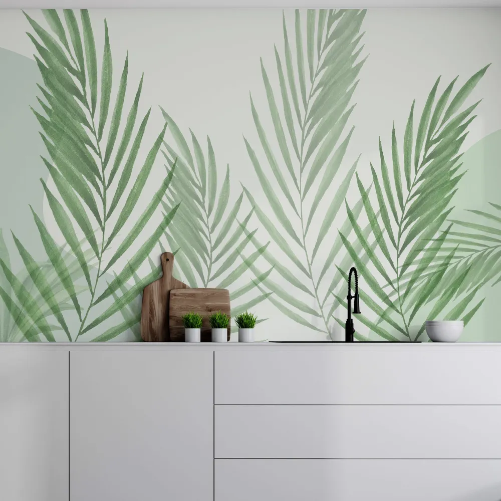 Papel de Parede Aquarela Folhas Verdes Minimalistas MP