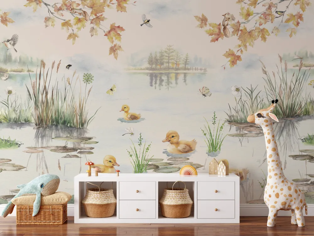 Papel de Parede Aquarela Patinhos na Primavera MP