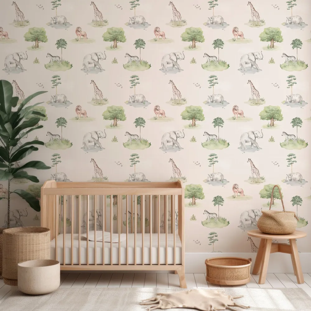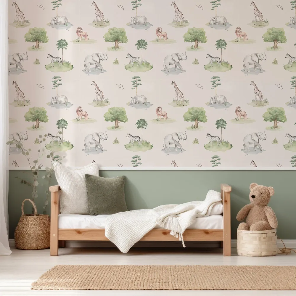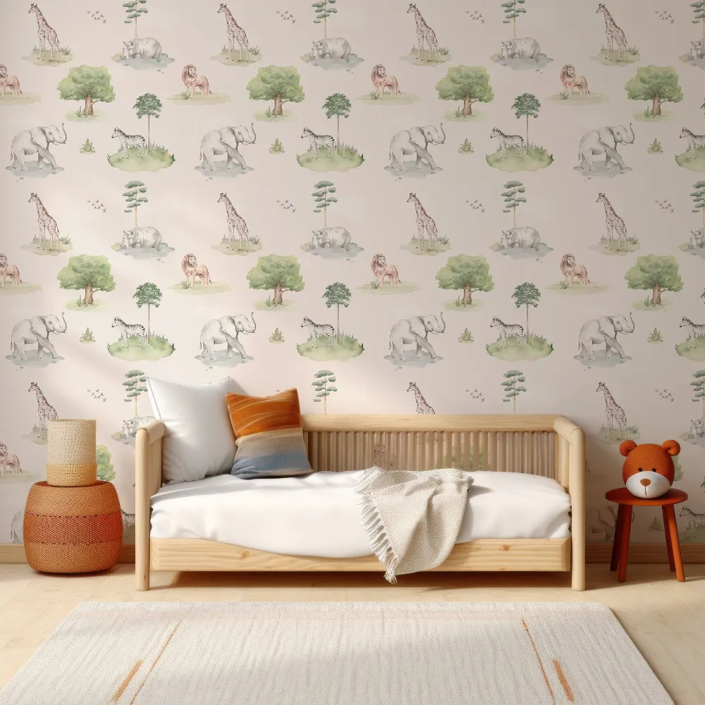 Transforme o quarto do seu pequeno em uma aventura mágica com nosso Papel de Parede Aquarela Safari com Animais! Este design encantador apresenta uma coleção de adoráveis animais da savana, como girafas, leões e elefantes, tudo em suaves tons aquarelados. Com árvores delicadas e um toque de natureza, este papel de parede cria um ambiente tranquilo e divertido, ideal para estimular a imaginação do seu pequeno explorador.