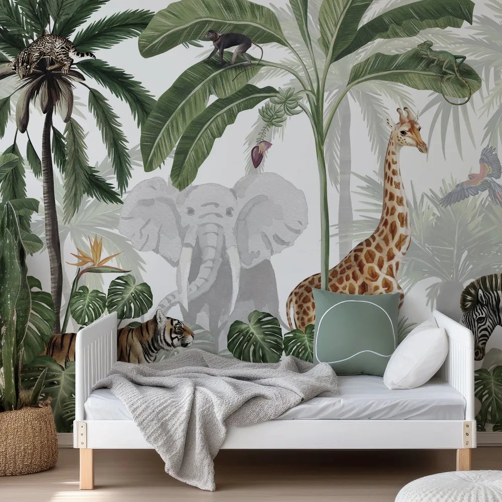 Papel de Parede Aquarela Selva Exótica Infantil MP