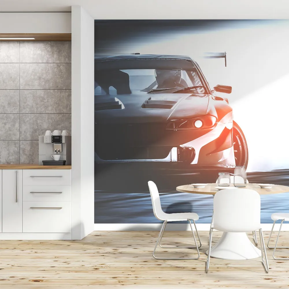 Papel de Parede Carro de Corrida com Efeito de Fumaça MP