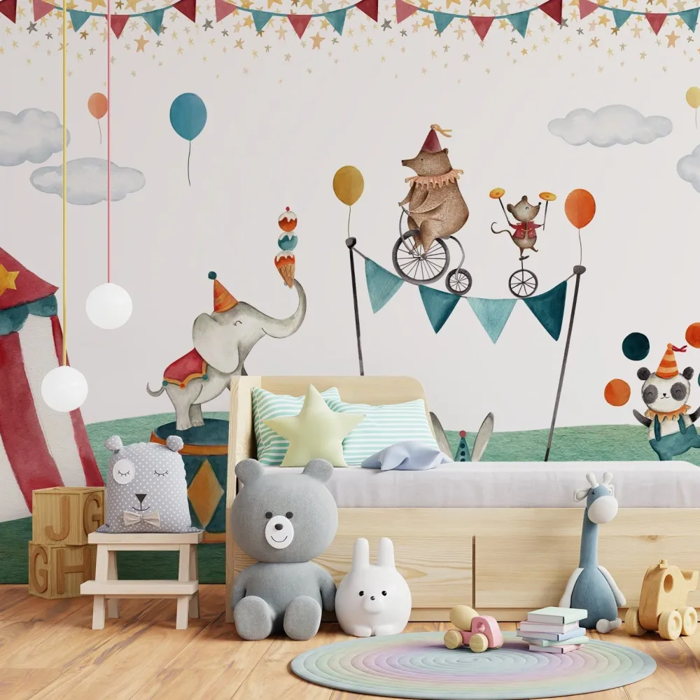 Entre no mundo mágico do circo com o Papel de Parede Circo Aquarela Infantil! Este mural vibrante apresenta uma cena lúdica com animais encantadores, como ursos equilibrando-se e coelhos saindo de cartolas, tudo em belíssimas aquarelas. Perfeito para transformar o quarto do seu filho em um espaço divertido e inspirador, onde a imaginação ganha vida. Traga a alegria do circo para dentro de casa e ofereça momentos de diversão e encantamento!