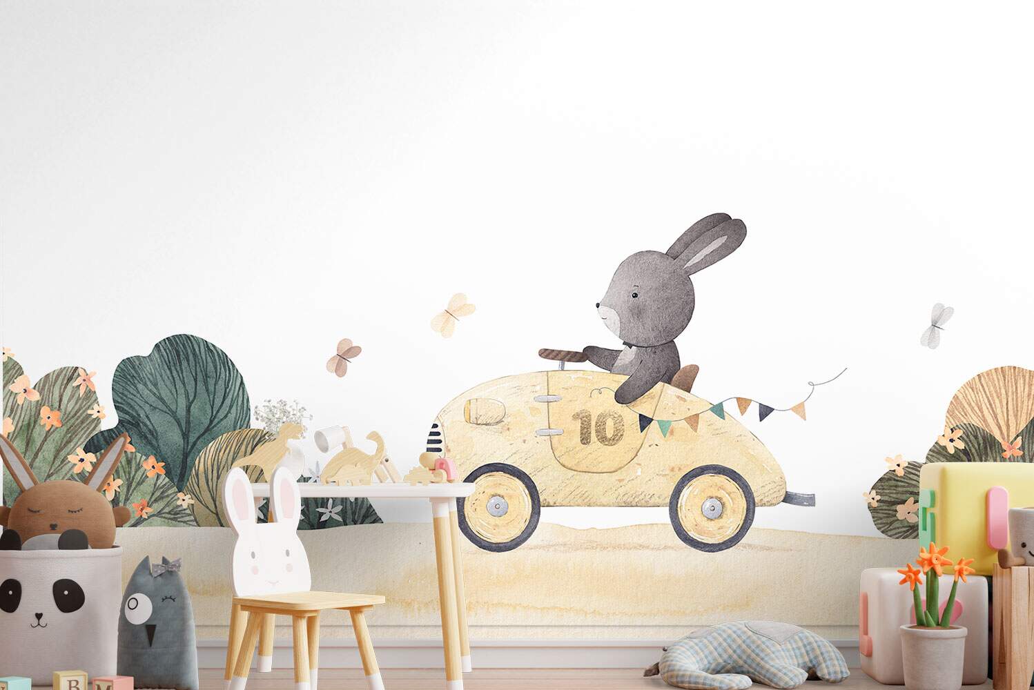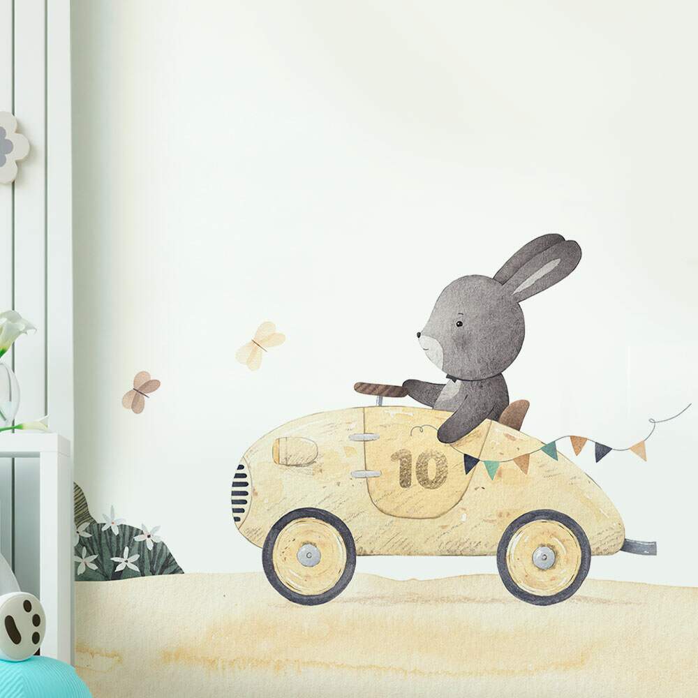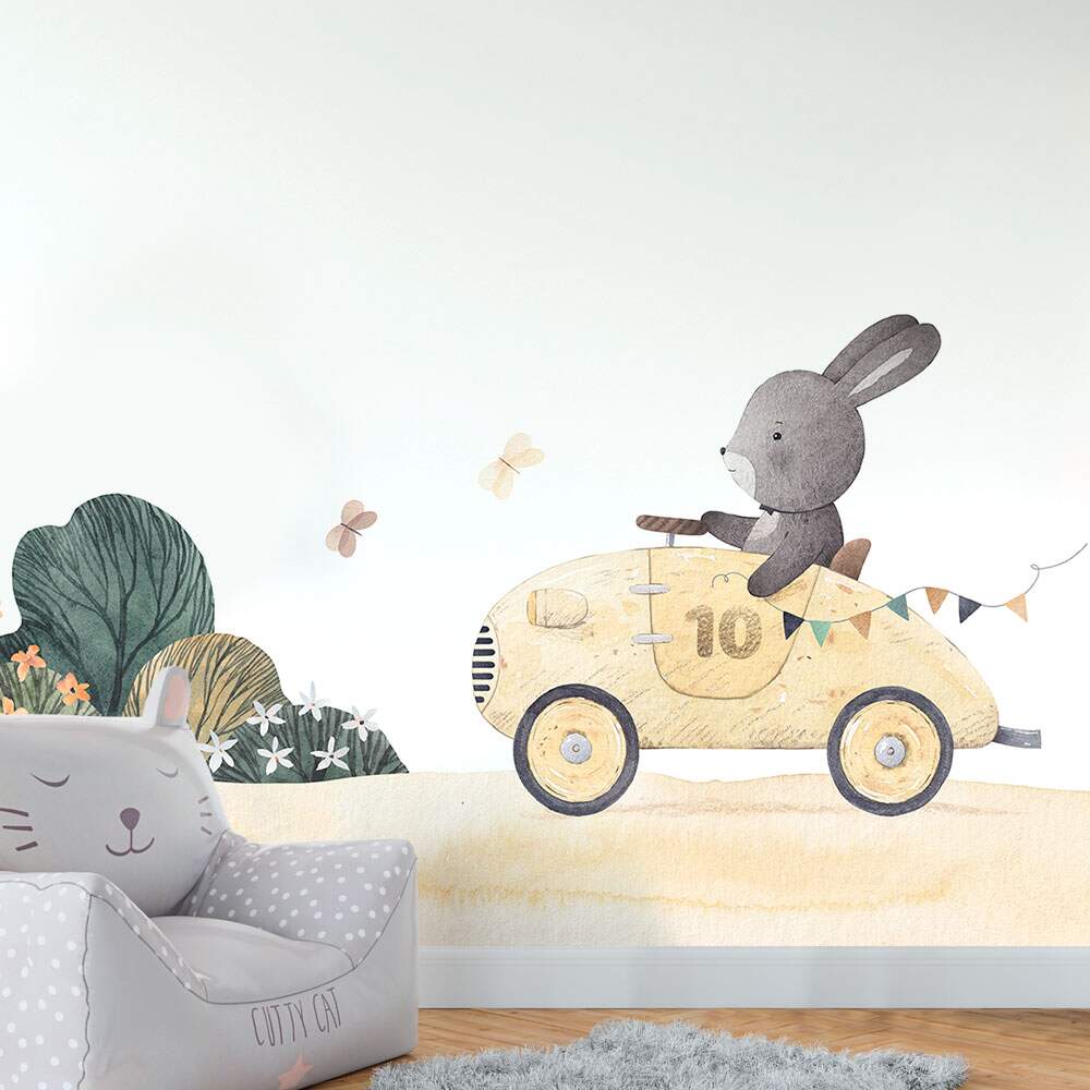 Papel de Parede Coelho em Seu Carro de Corrida Aquarela MP