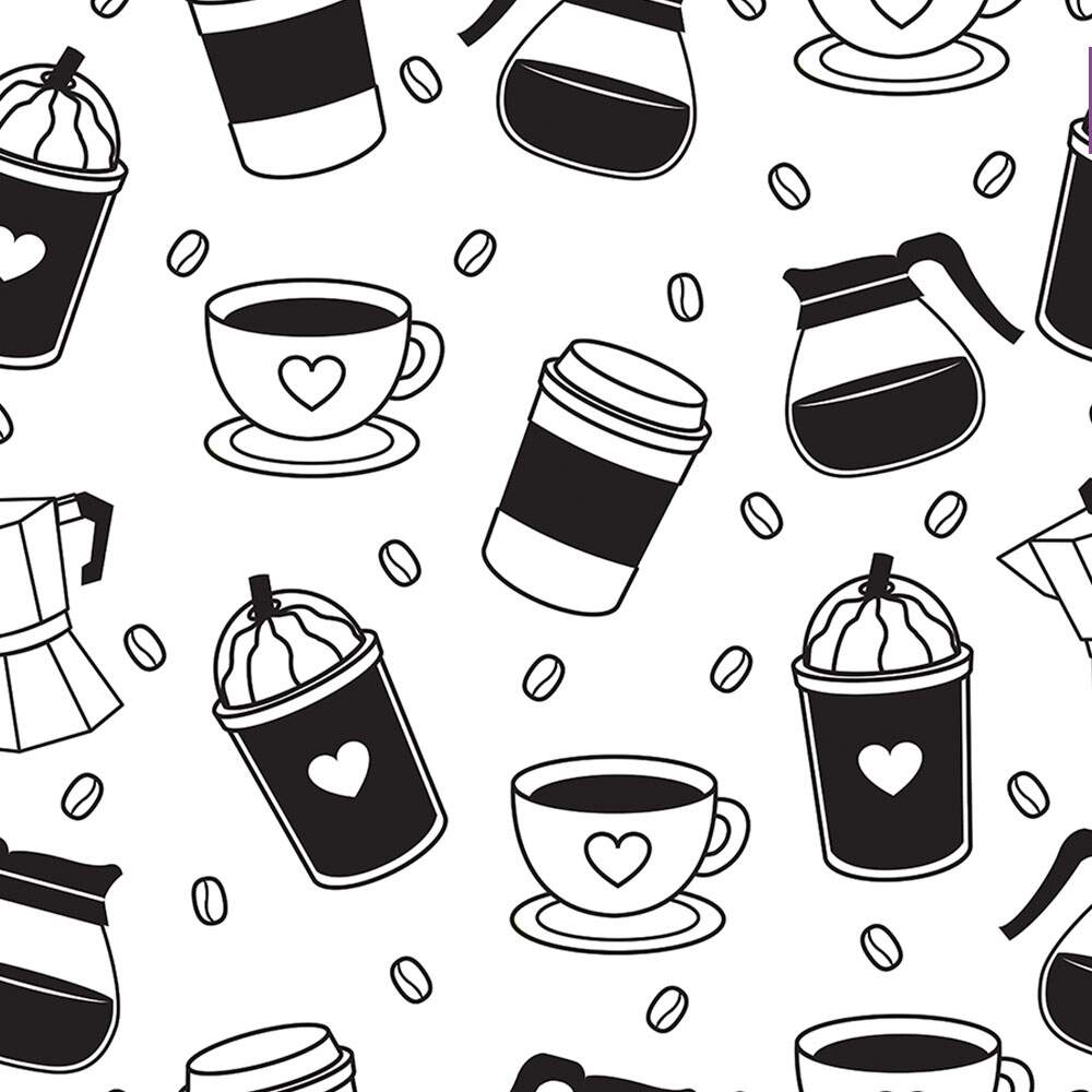 Transforme sua cozinha em um ambiente acolhedor e cheio de estilo com o Papel de Parede Cozinha Café Preto e Branco. As estampas de xícaras, cafeteiras, copos e grãos de café em preto e branco trazem um charme clássico e aconchegante para o espaço. Ideal para os amantes de café, esse papel de parede autocolante é perfeito para renovar a decoração de forma prática e rápida. Adicione personalidade e energia à sua cozinha com esse papel de parede exclusivo.