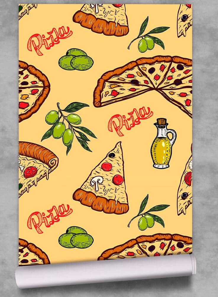 Papel de Parede Cozinha Fast Food Pizza Fundo Amarelo