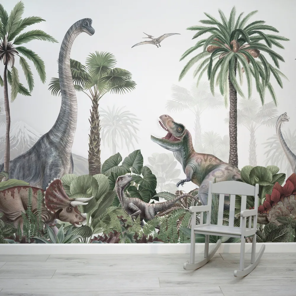 Papel de Parede Dinossauros na Selva em Aquarela MP