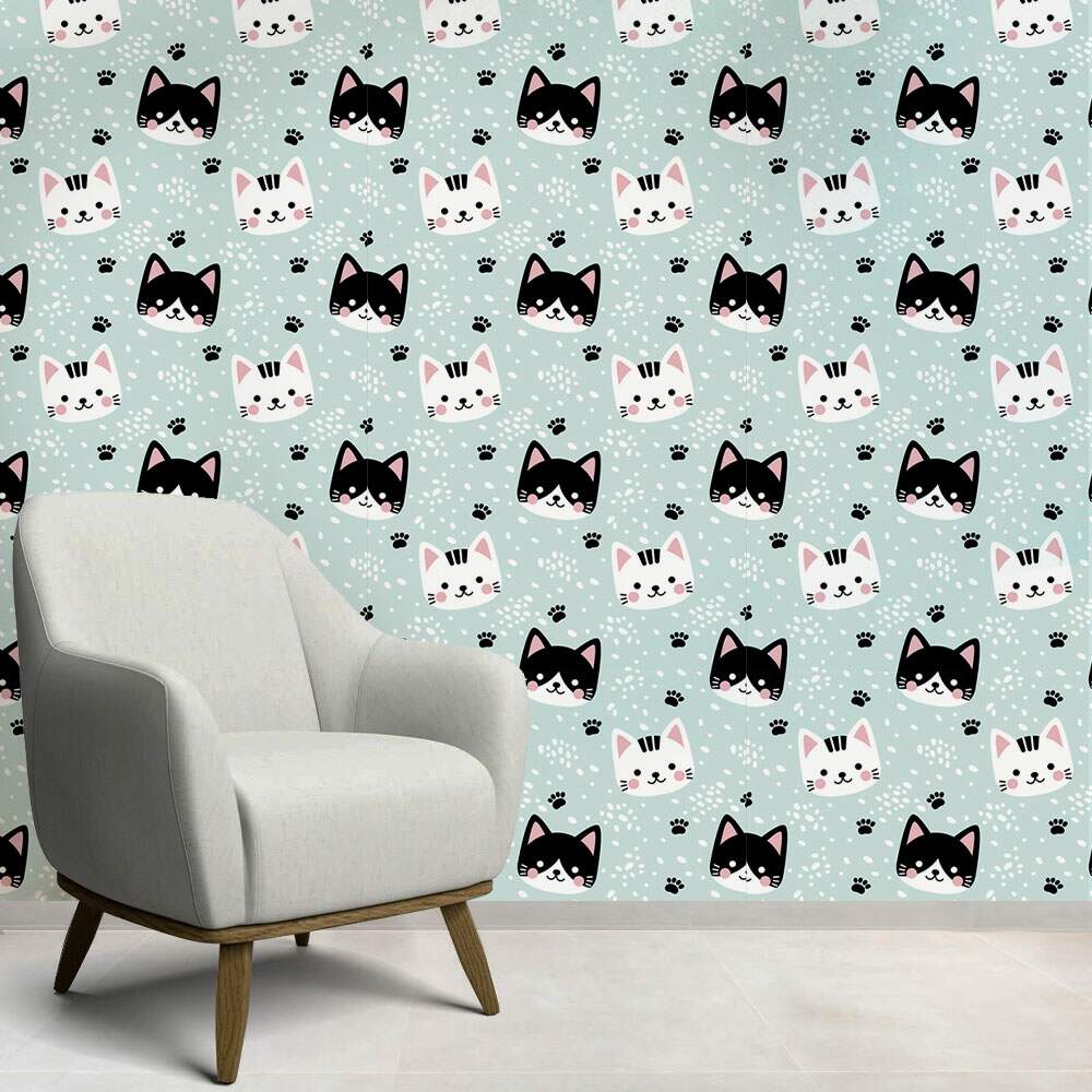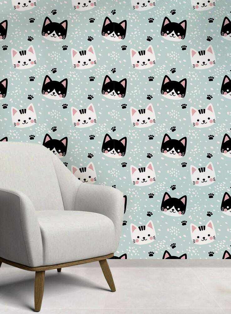 papel de parede, gatos, decoração, ambiente, felinos, paixão, graça, vida DESCRIÇÃO SUGERIDA Transforme o seu espaço em um verdadeiro paraíso para os amantes de gatos com o Papel de Parede - Mod 357. Com diversas imagens de gatinhos adoráveis, essa é a escolha perfeita para quem deseja trazer mais vida, alegria e personalidade para a decoração. Expresse sua paixão pelos felinos e deixe o ambiente ainda mais acolhedor e encantador com esse papel de parede exclusivo. Ideal para criar um ambiente cativante e cheio de estilo.