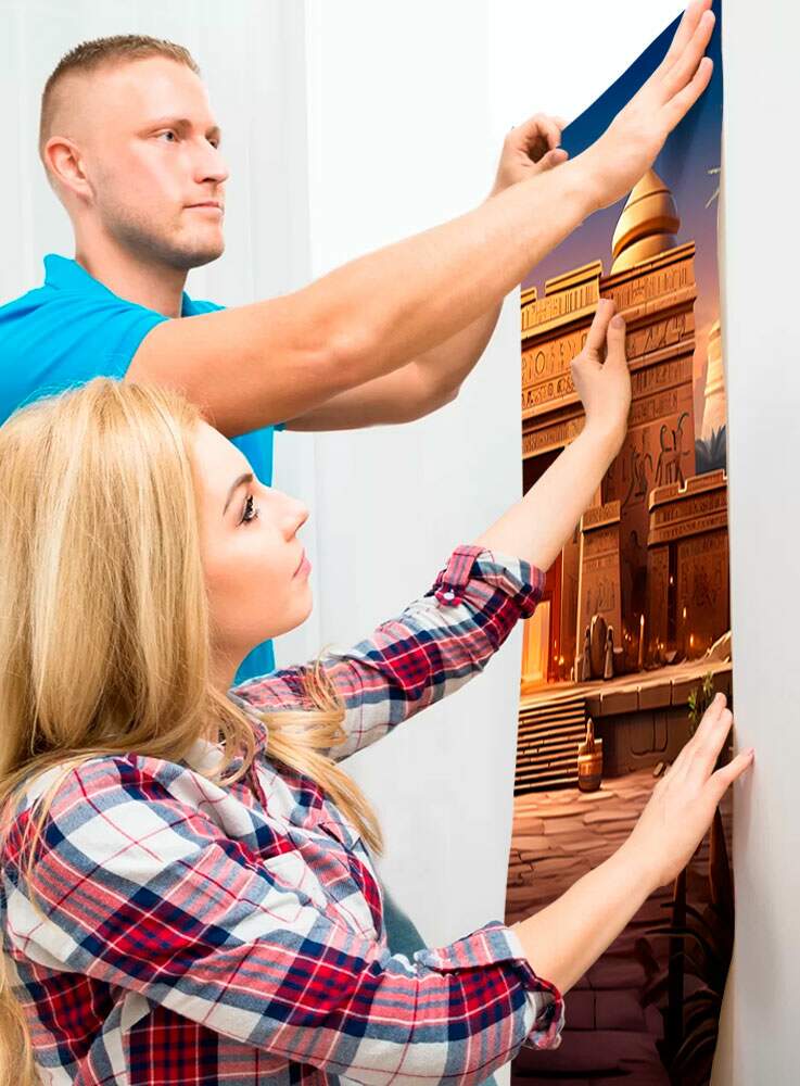 A sobreposição inteligente dos rolos permite um encaixe perfeito entre as partes, criando transições suaves e harmoniosas em sua imagem mural.