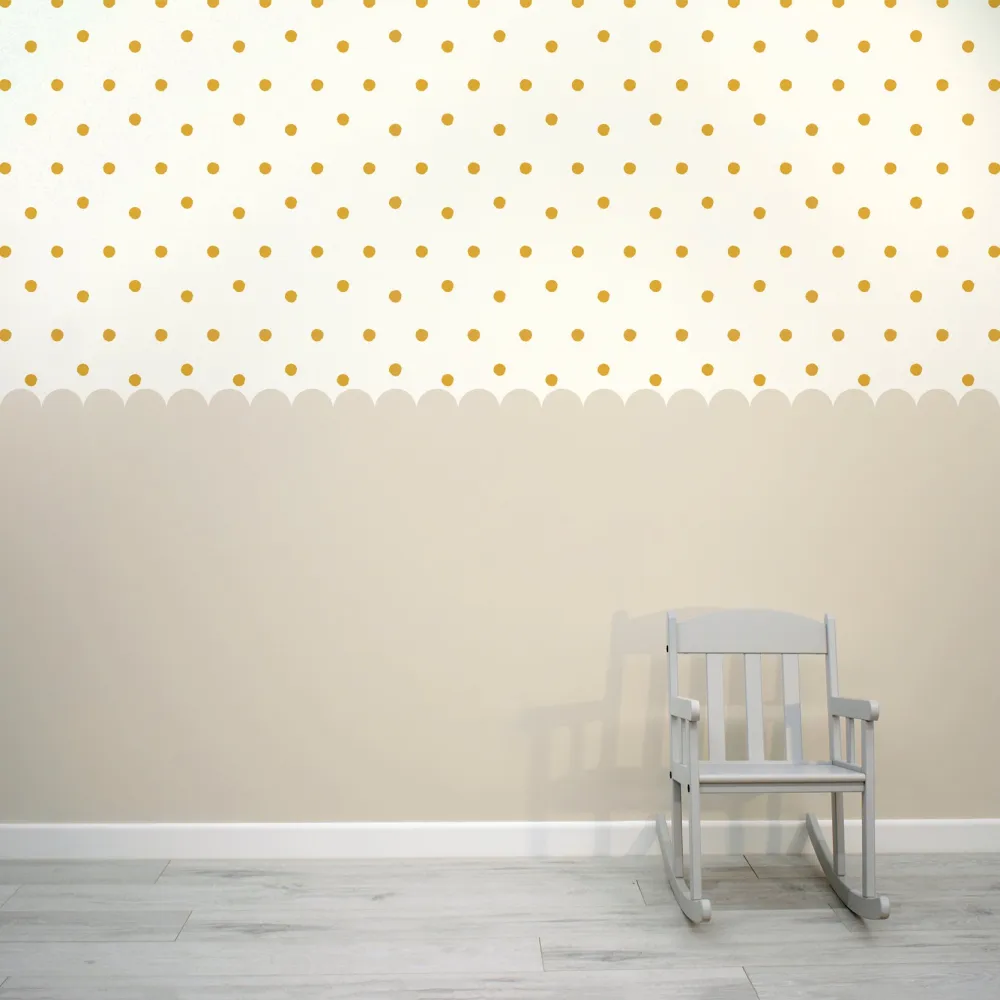 Transforme o quarto do seu bebê com o Papel de Parede Escalopado Bege com Pontos Mostarda. Este lindo mural apresenta delicados pontos mostarda dispostos em bordas escalopadas em um tom neutro de bege. As cores quentes e suaves trazem vida e aconchego à decoração do seu espaço, criando um ambiente relaxante e acolhedor. Ideal para adicionar um toque de charme e serenidade ao quarto do seu pequeno.