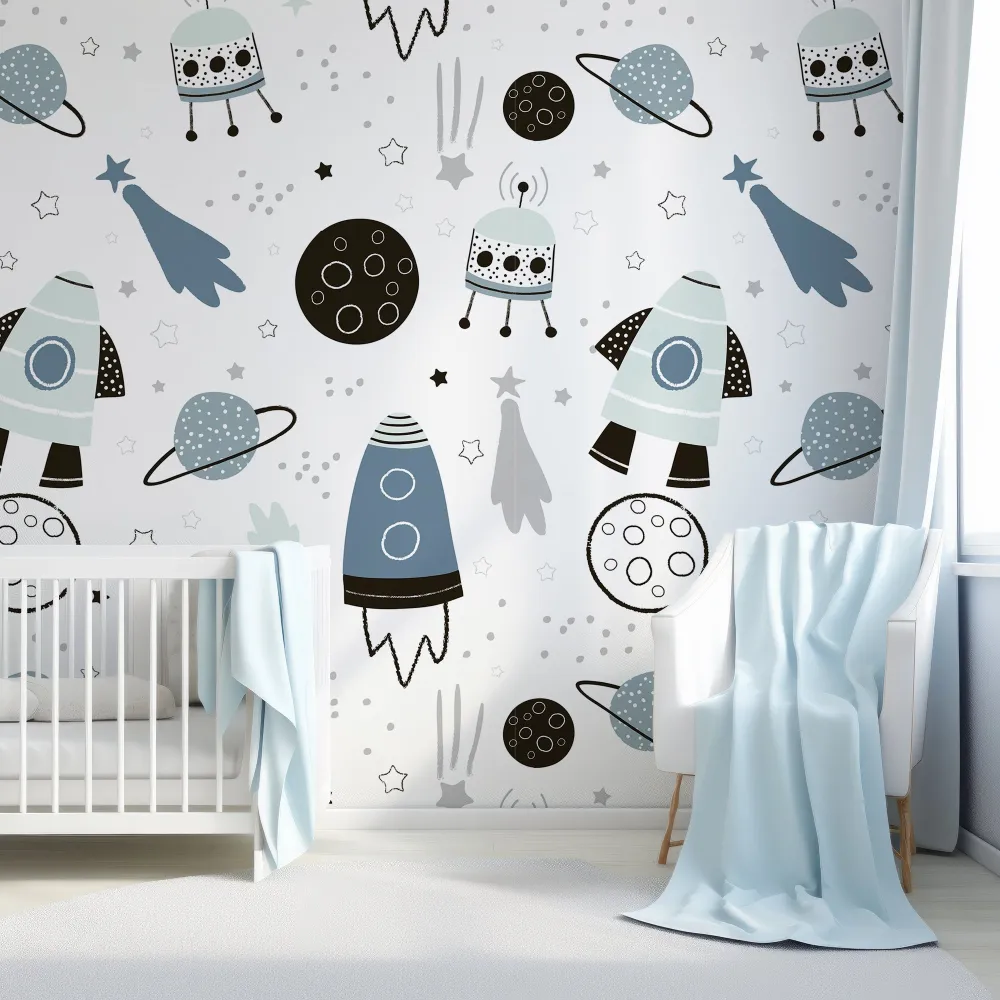 Papel de Parede Espaço Azul e Cinza Infantil MP