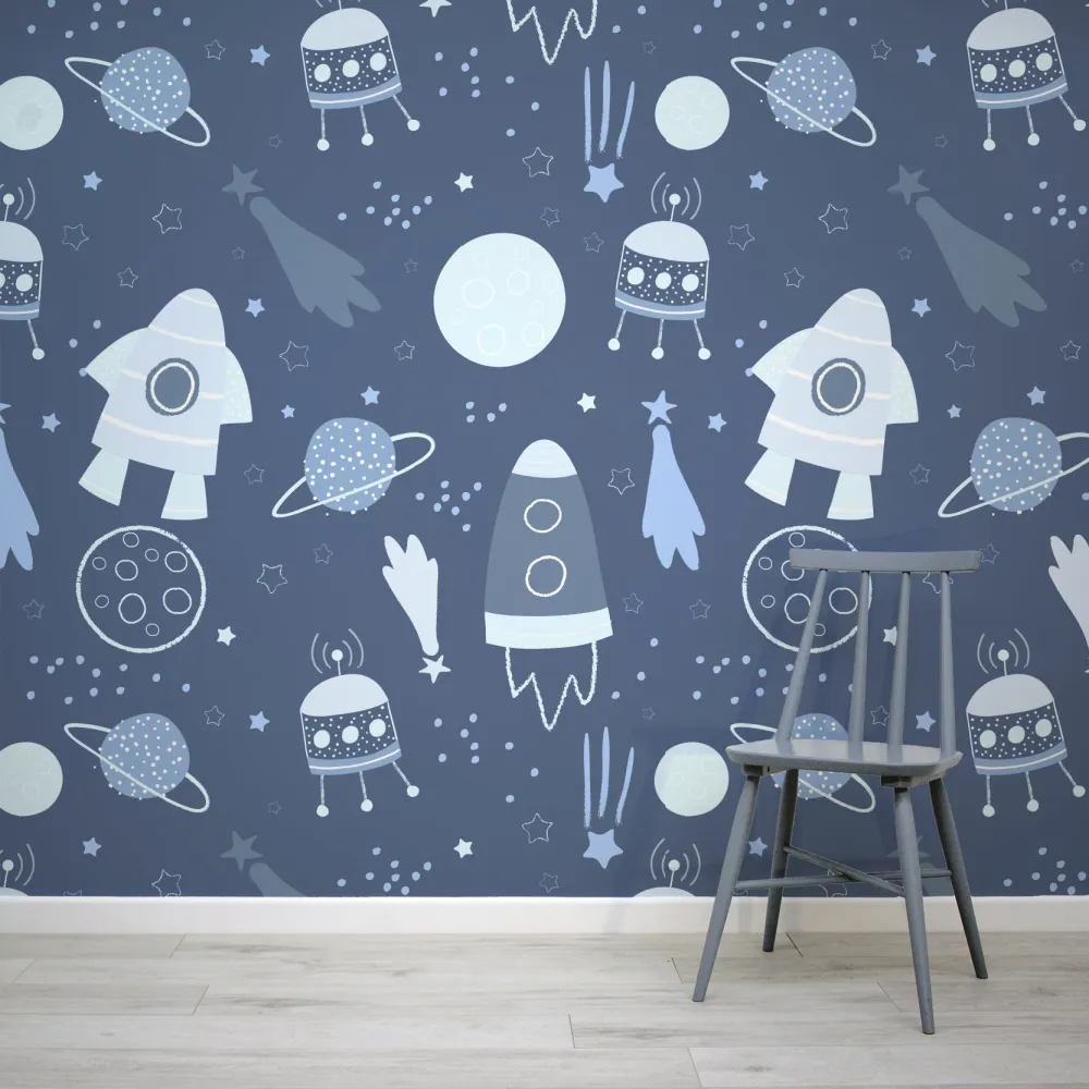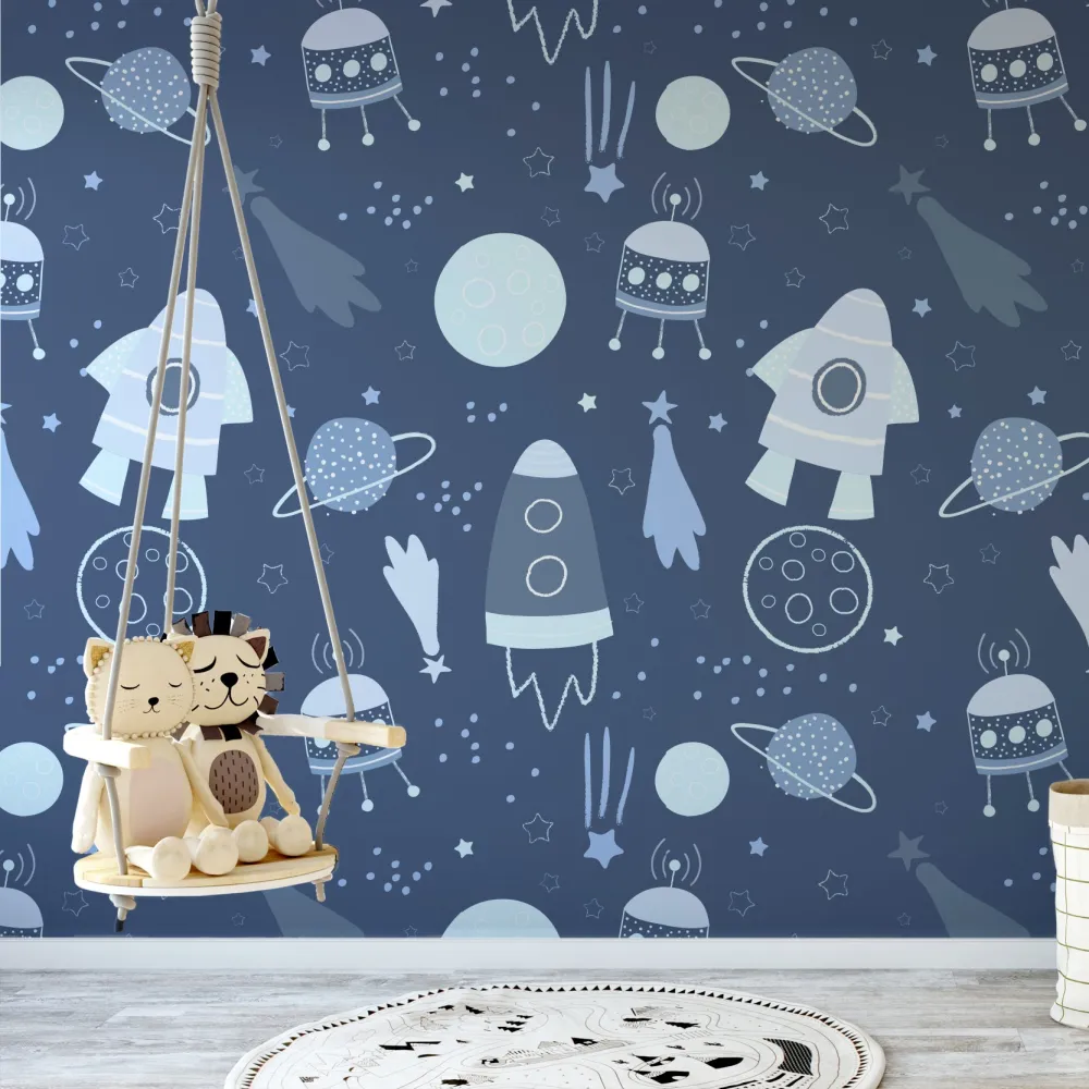 Papel de Parede Espaço Azul e Marinho Infantil MP