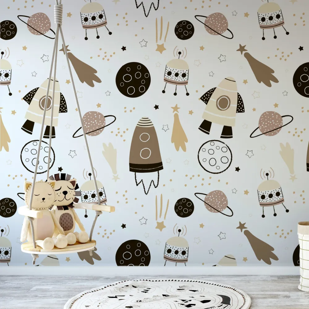 Transforme o quarto do seu filho em uma verdadeira nave espacial com o nosso Papel de Parede Espaço Infantil Bege. Este design encantador traz ilustrações de foguetes, estrelas, planetas e até mesmo UFOs, tudo isso em um fundo suave bege que combina perfeitamente com a decoração do ambiente. Estimule a imaginação e a curiosidade das crianças, proporcionando um espaço onde os sonhos podem alcançar as estrelas.