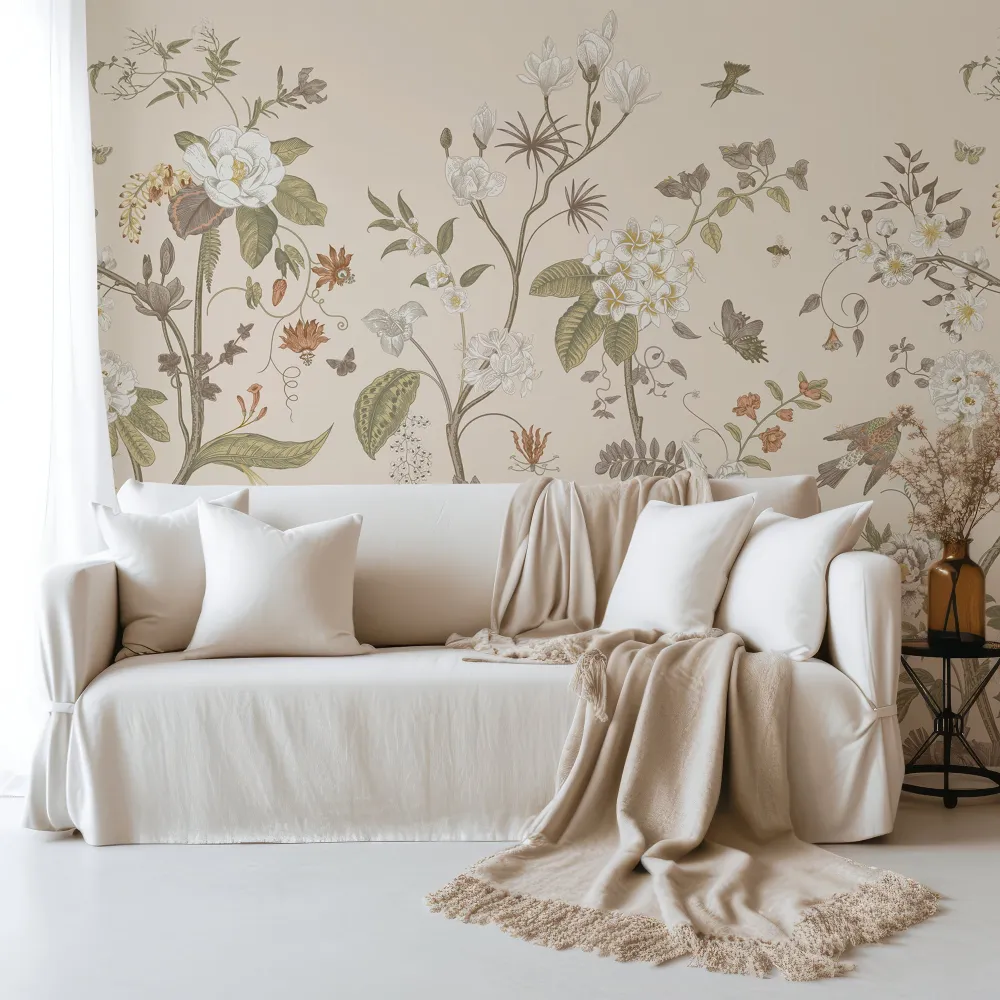 Papel de Parede Floral Botânico Victoriano Bege MP