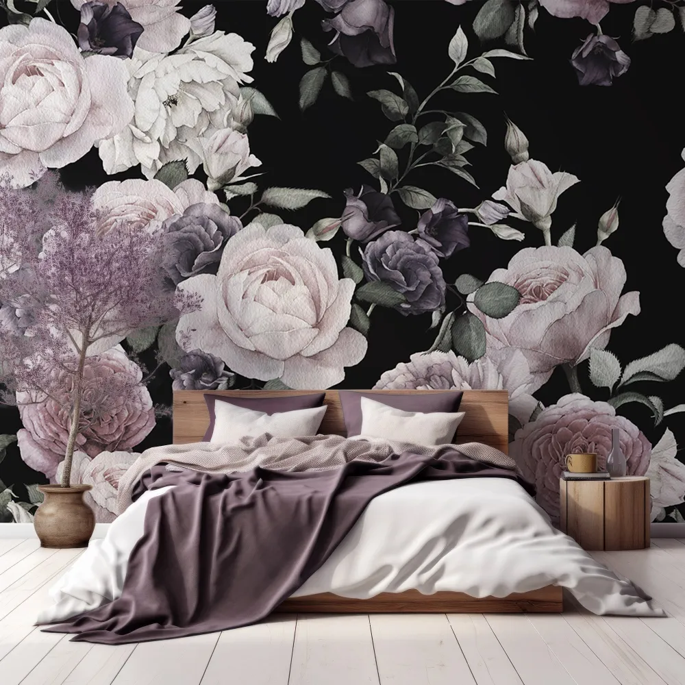 Papel de Parede Floral Escuro Rosa e Roxo MP