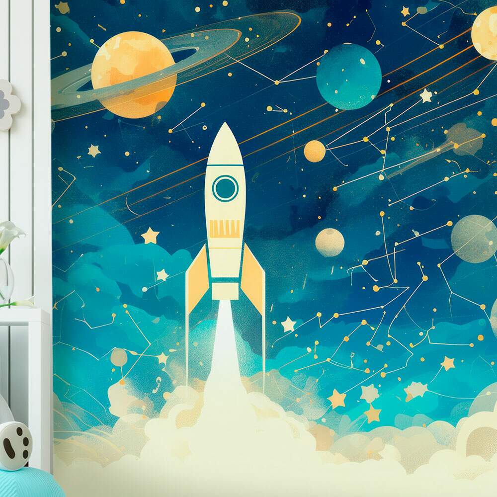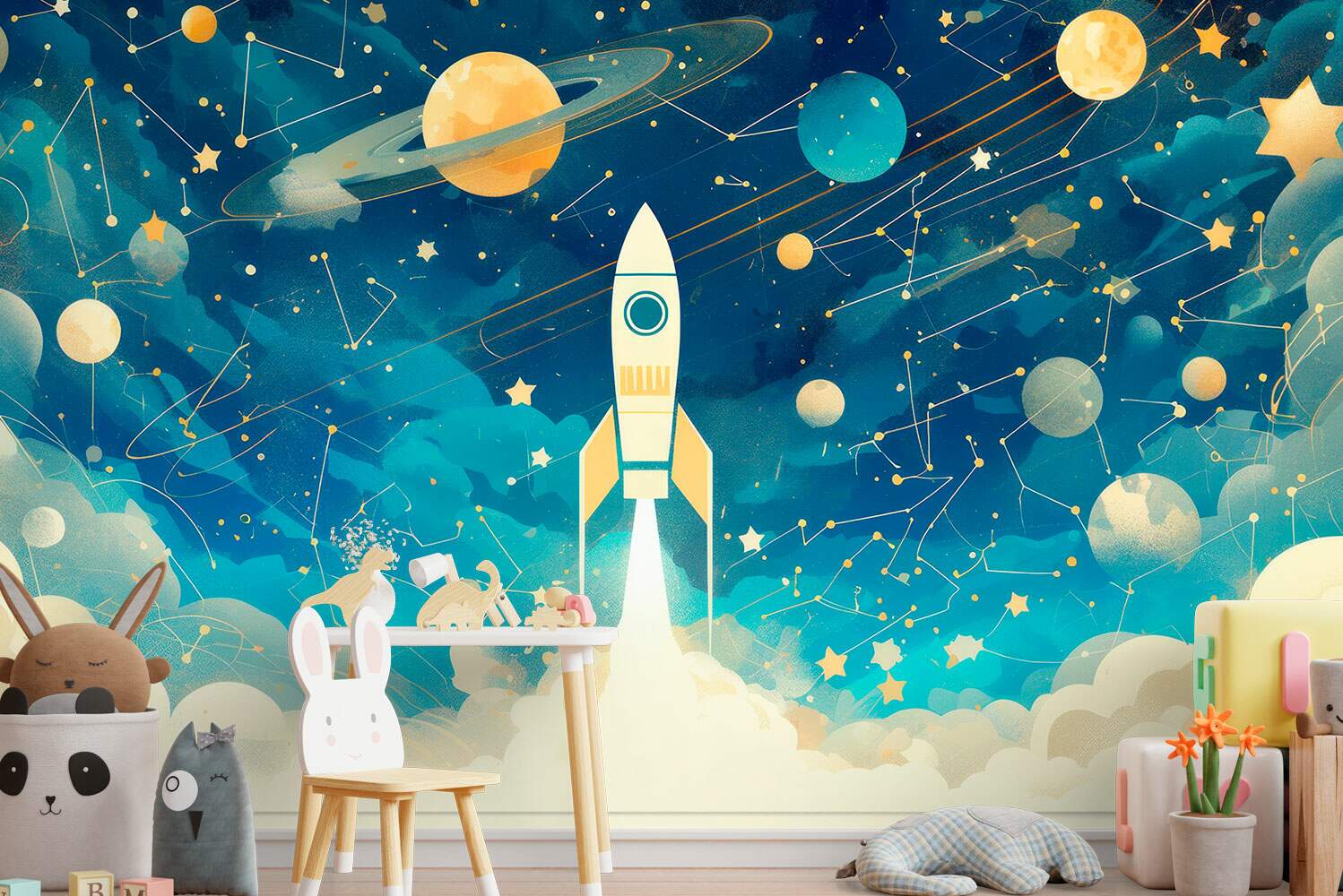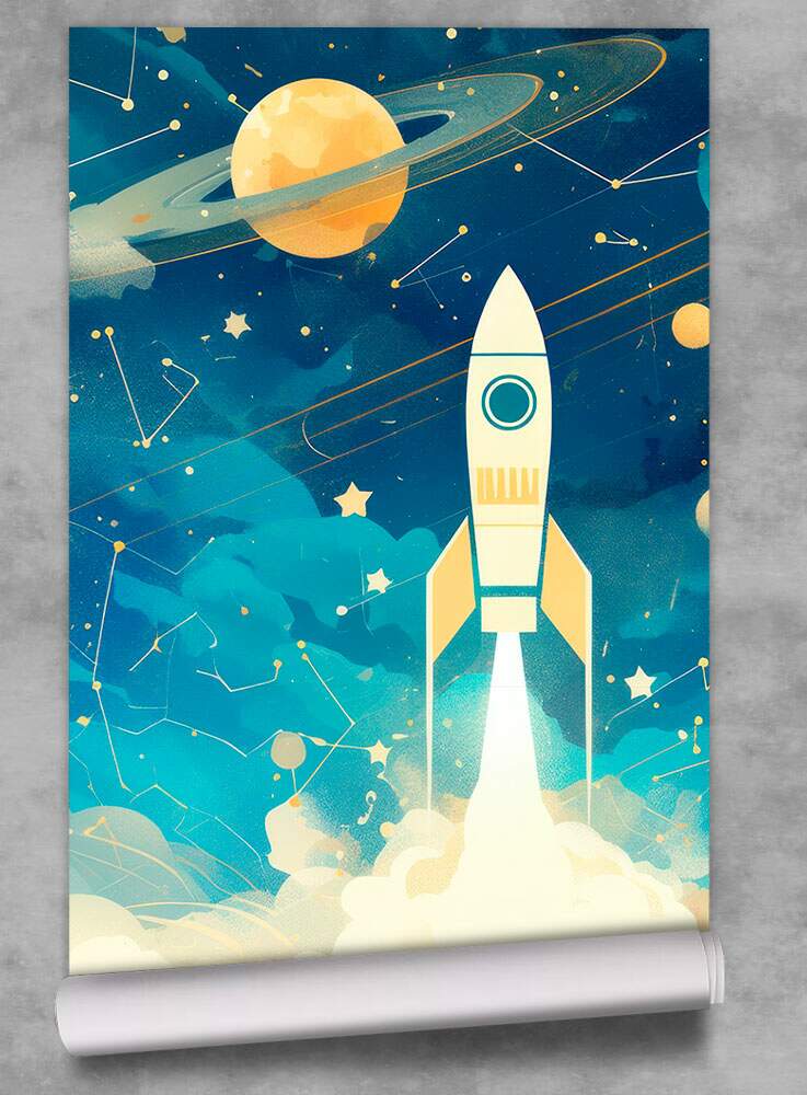 Papel De Parede Foguete Espacial Estrelas E Planetas MP