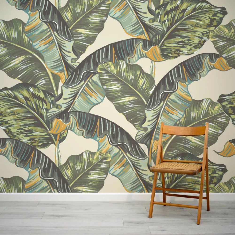 Traga a essência tropical para sua casa com o nosso Papel de Parede Folha de Bananeira Verde. Com grandes folhas de bananeira em diversos tons de verde sobre um fundo claro, este design é tão ousado quanto exótico. Ideal para amantes da natureza, combina perfeitamente com móveis de rattan e vime, criando um ambiente descontraído e acolhedor.