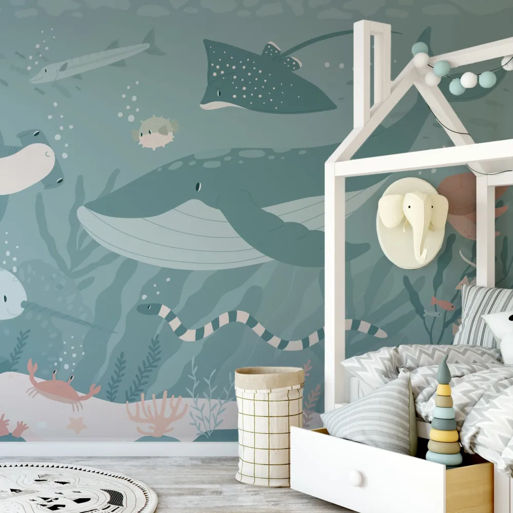 Transforme o quarto do seu filho em um encantador mundo subaquático com este papel de parede colorido. Com ilustrações vibrantes de vida marinha, este mural traz diversão e imaginação ao ambiente. Personalize com as dimensões da sua parede e escolha o tipo de papel ideal para você. Visualize como ficará antes de finalizar a compra.