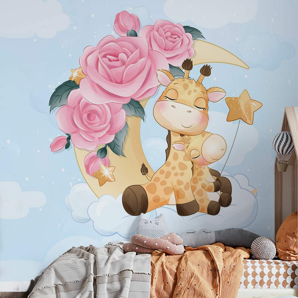 Transforme o quarto do seu bebê em um ambiente encantador com o Foto Mural Girafa e Filhote na Nuvem. A delicada imagem de uma girafa e seu filhote, sentados em uma nuvem rodeada por rosas e folhas, traz uma atmosfera calma e acolhedora. Com tons suaves de amarelo, rosa e azul, este mural é perfeito para estimular a imaginação e criatividade dos pequenos. Renove a decoração do espaço infantil com esse toque de ternura e magia.