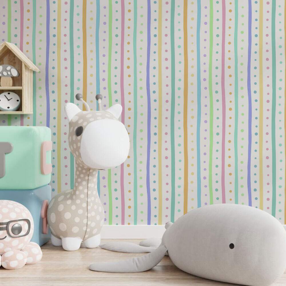 Papel de Parede Infantil Listras e Bolinhas Coloridas